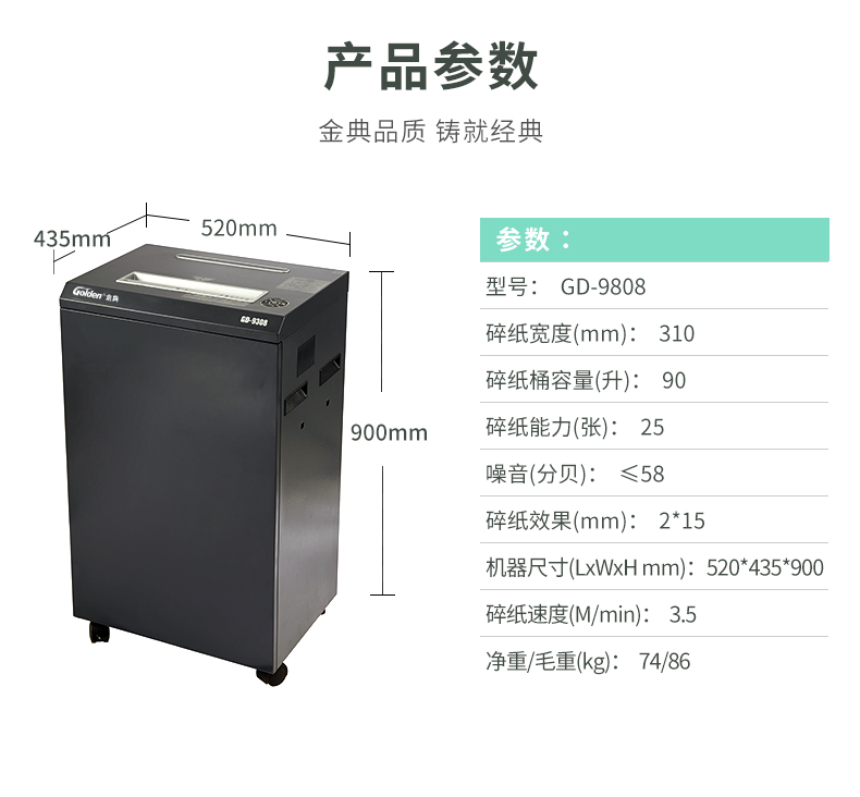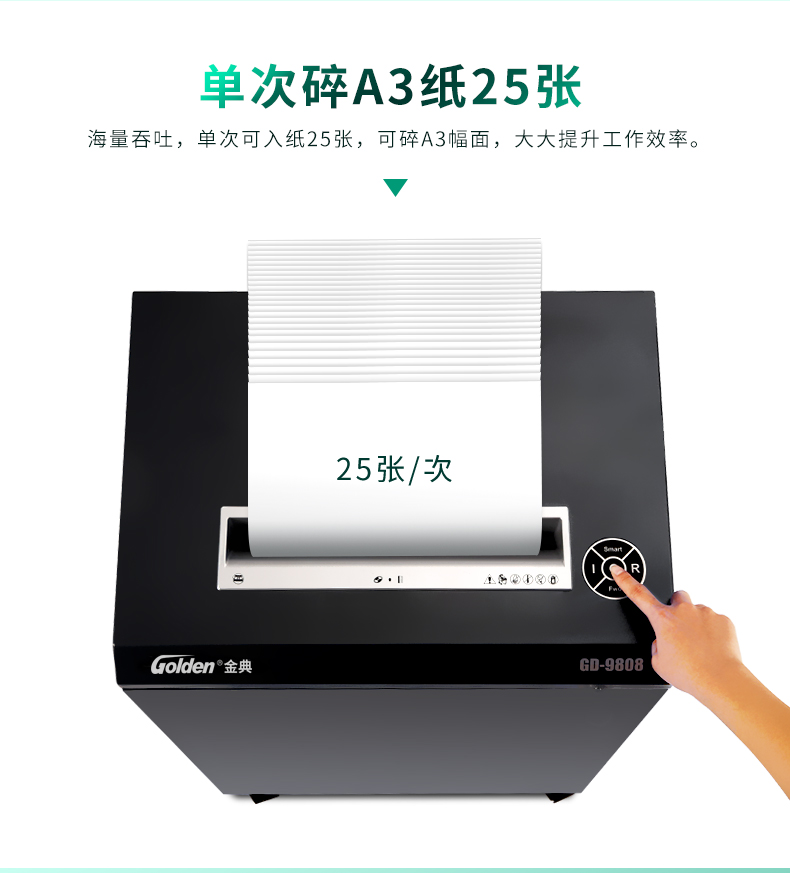 金典(Golden)GD-9808碎纸机办公高保密A3碎纸大容量(单次25张/可碎光盘) 自营