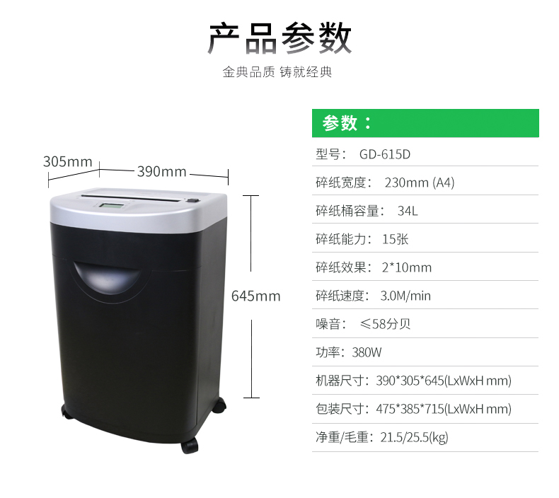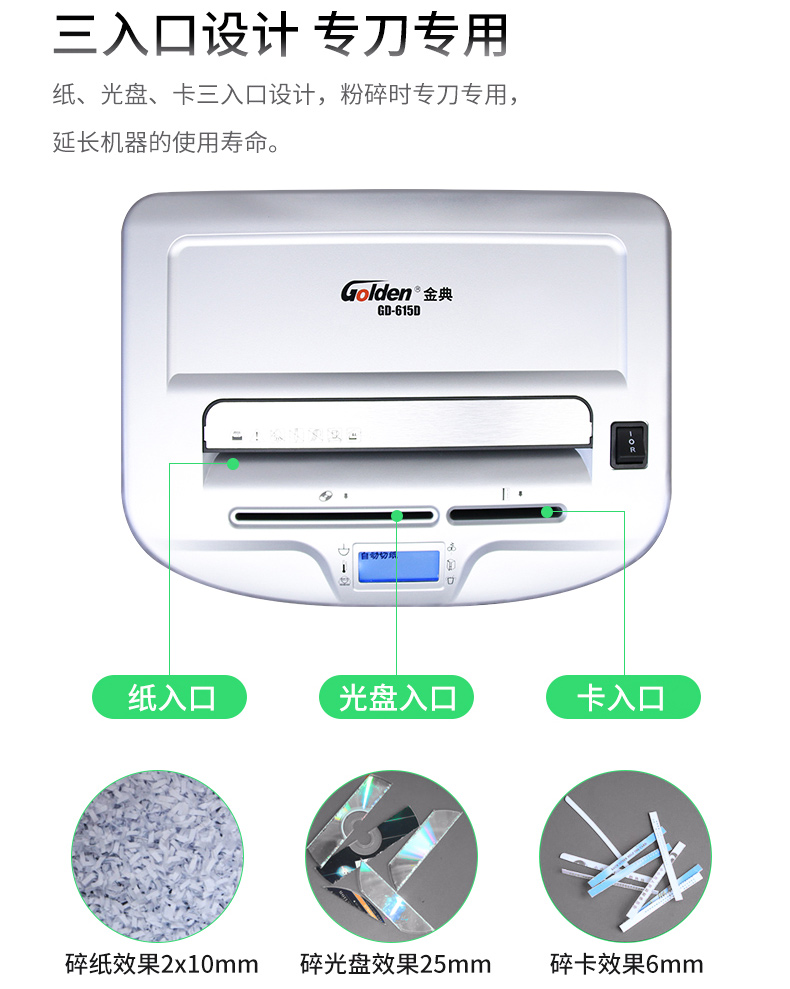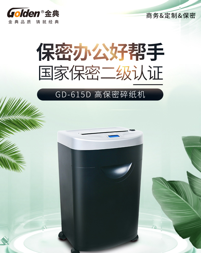 金典GOLDENGD-615D碎纸机商用碎纸机高保密碎纸机 自营