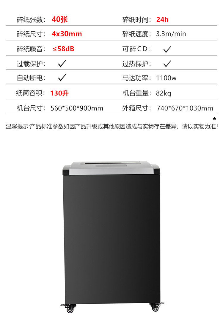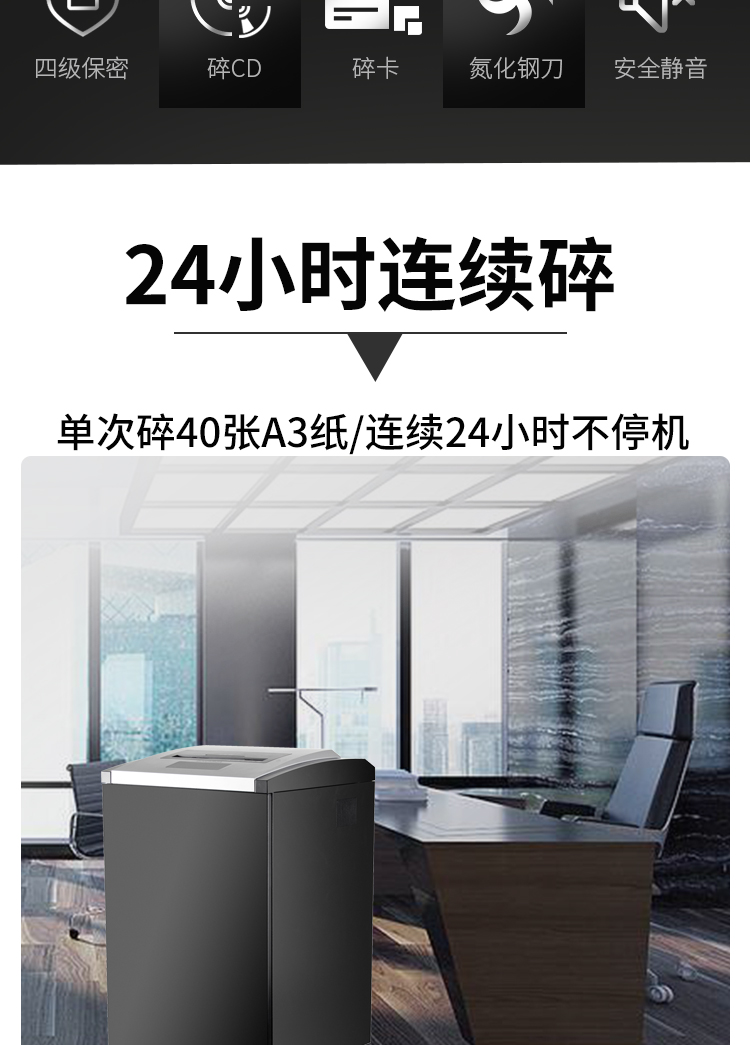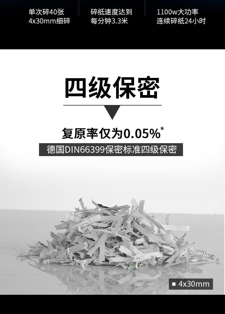震旦AURORA4级保密办公商用碎纸机(单次40张持续24小时不停机130L可碎卡、光盘)AS40430CD 自营