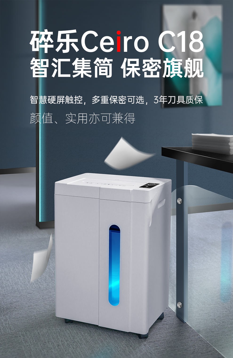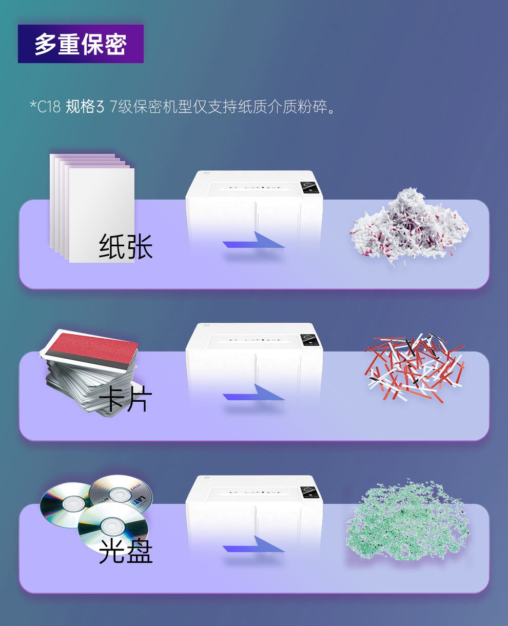 碎乐(Ceiro)C18高保密碎纸机智能商务型机[DIN66399]7级1*2米粒保密单次入纸达4张