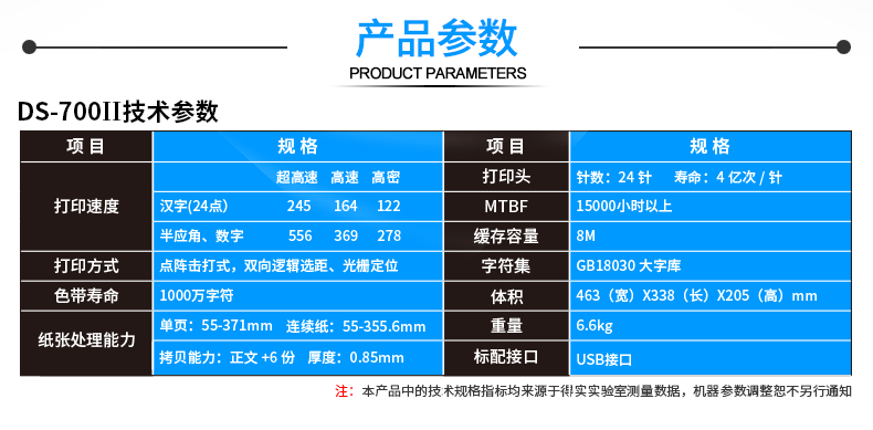 得实针式打印机DS-700II24针110列平推票据打印机 自营