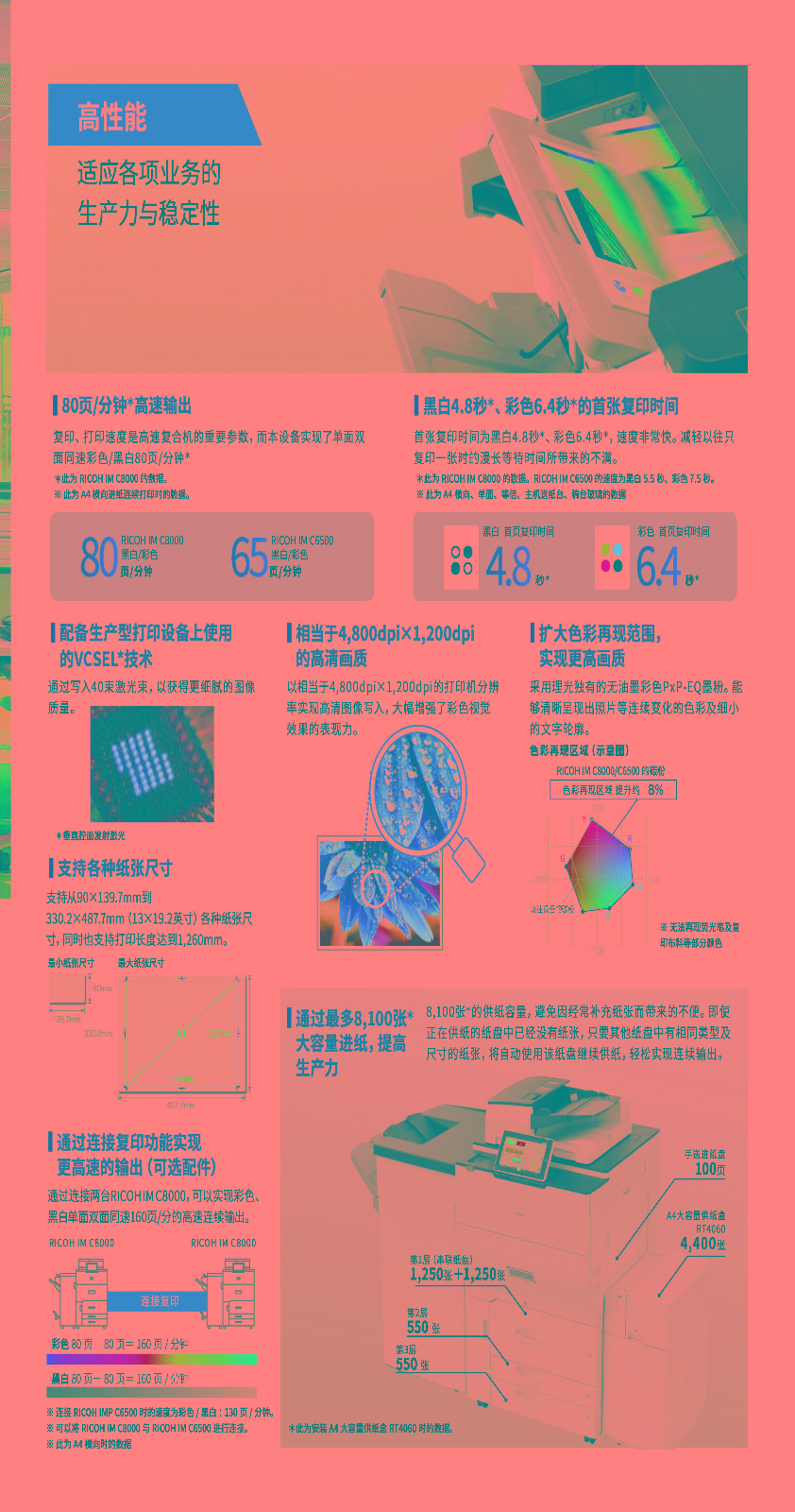 理光A3彩色高速数码复合机IMC8000复印机 自营