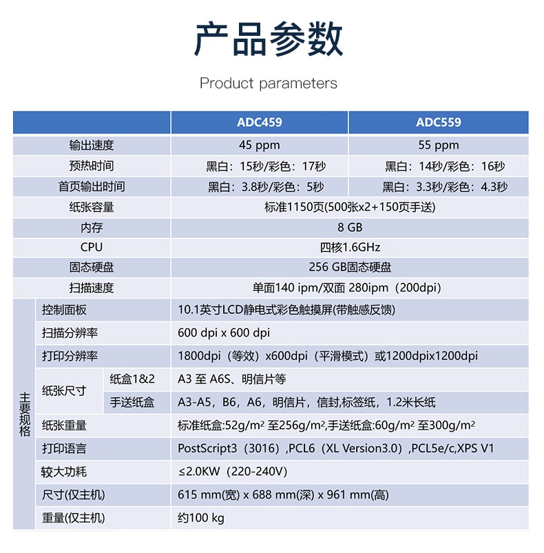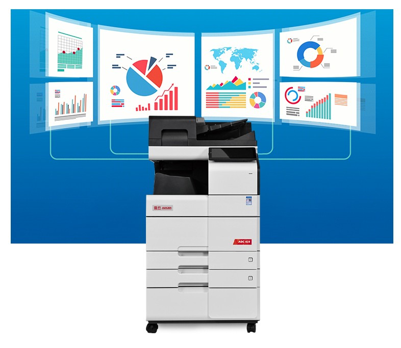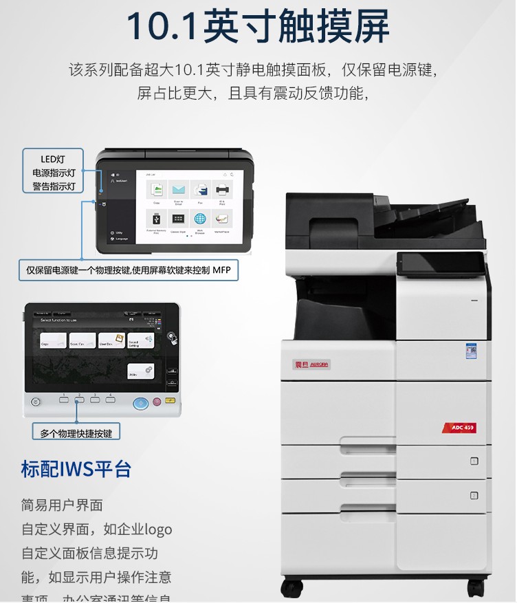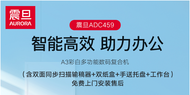 震旦(AURORA)ADC459A3彩白多功能数码复合机(含双面同步扫描输稿器+双纸盒+托盘+工作台)