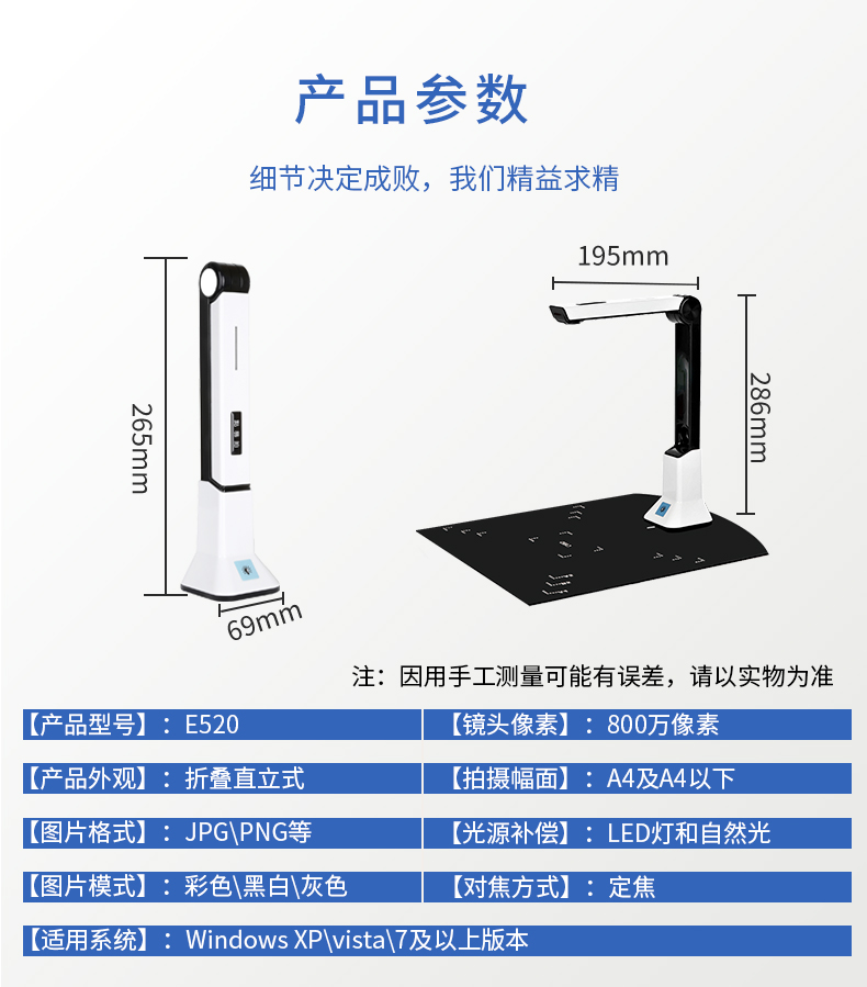 点易拍E520高拍式扫描仪,A4幅面,普通办公型 自营