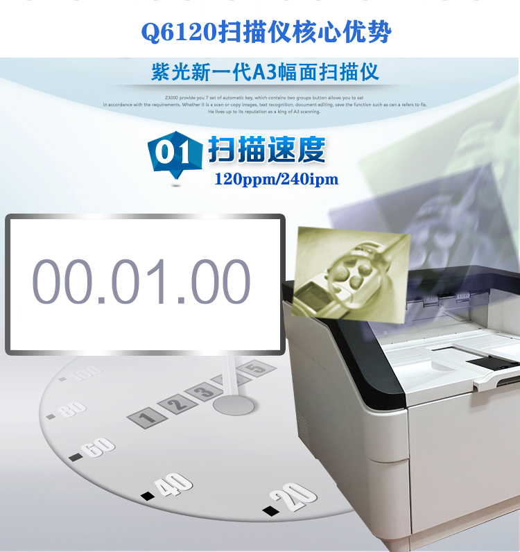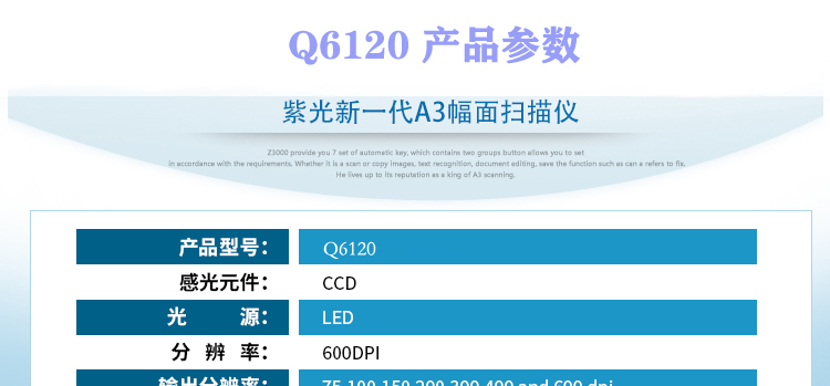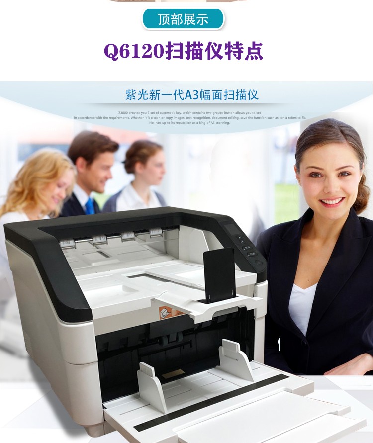 紫光A3高速扫描仪Q6120(白600dpiA3) 自营