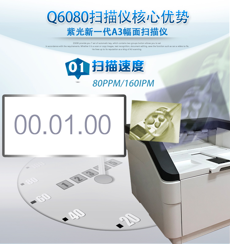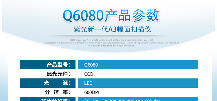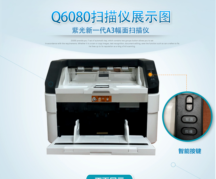 紫光A3高速扫描仪Q6080(白600dpiA3) 自营