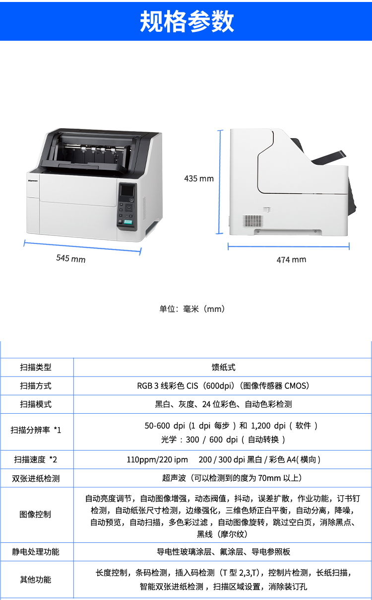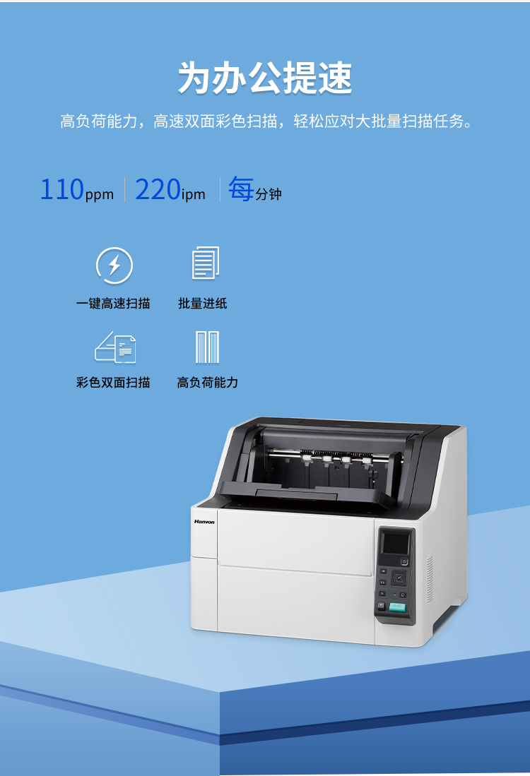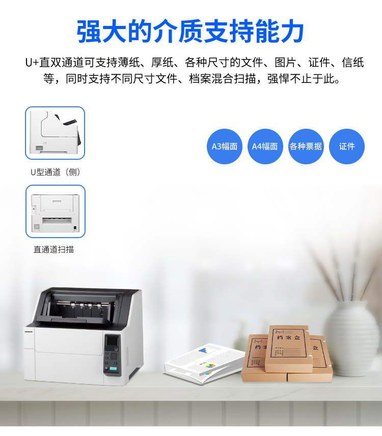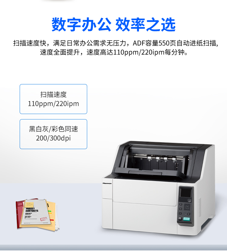 汉王(Hanvon)HW-9100馈纸式高速档案扫描仪A3幅面U+直双通道送纸彩色高清高速110ppm/220ipm(A3) 自营