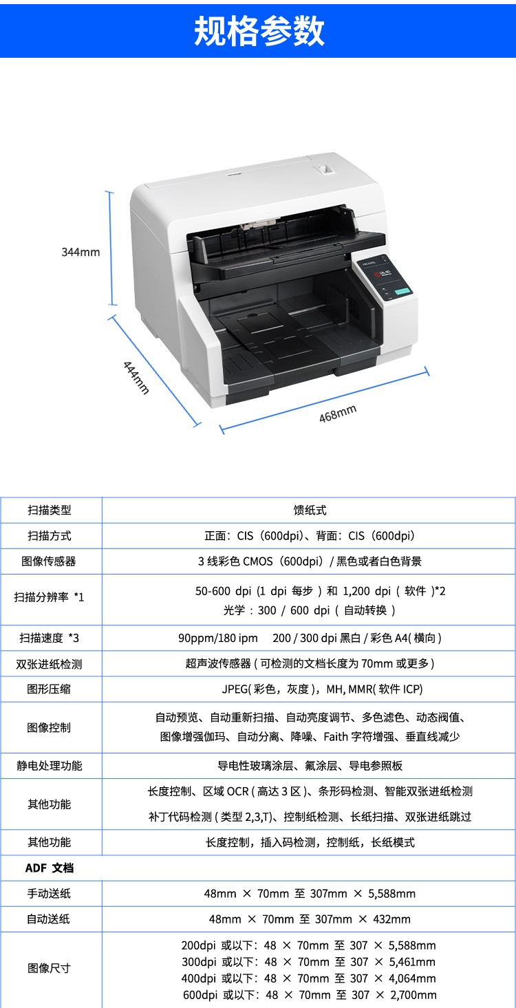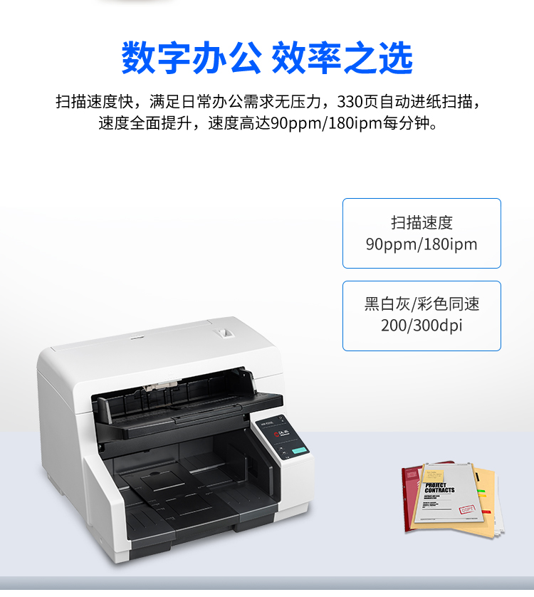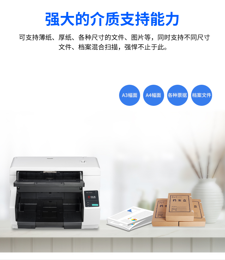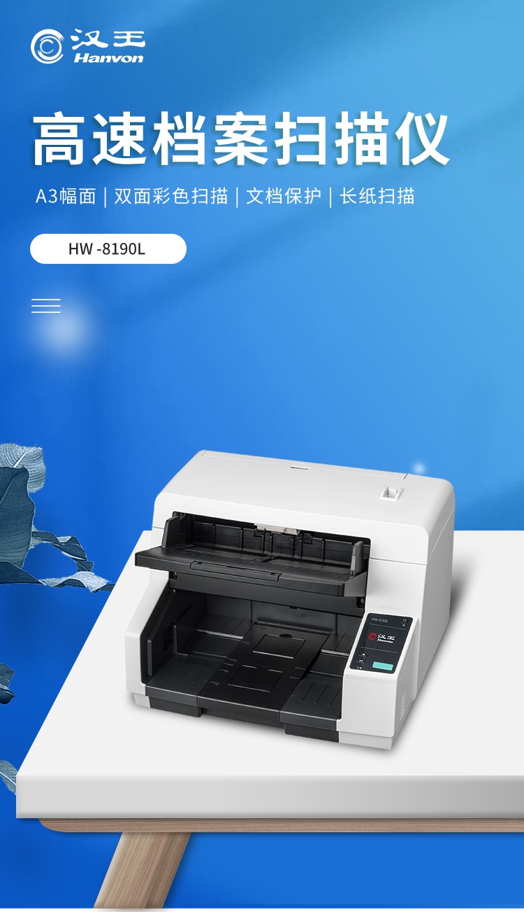 汉王(Hanvon)HW-8190L馈纸式高速档案扫描仪A3幅面办公文件批量自动进纸90ppm/180ipm三年质保(A3) 自营
