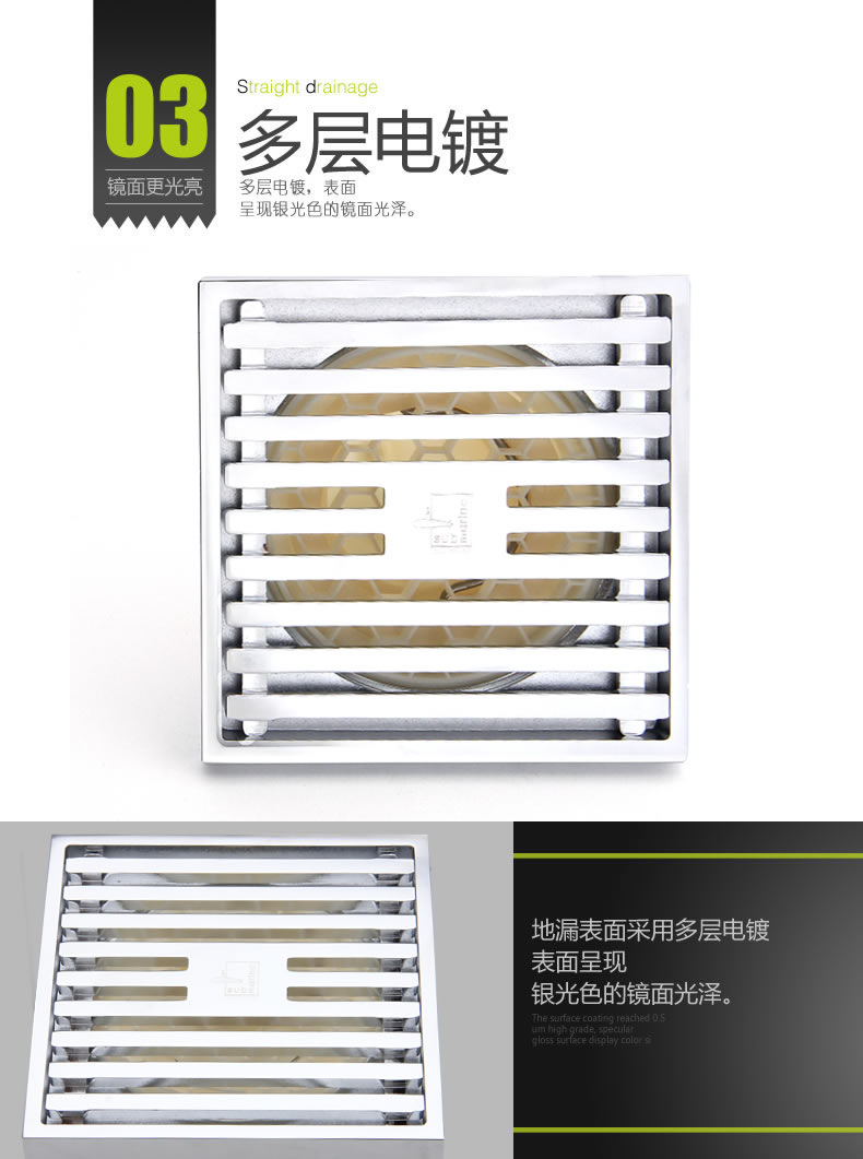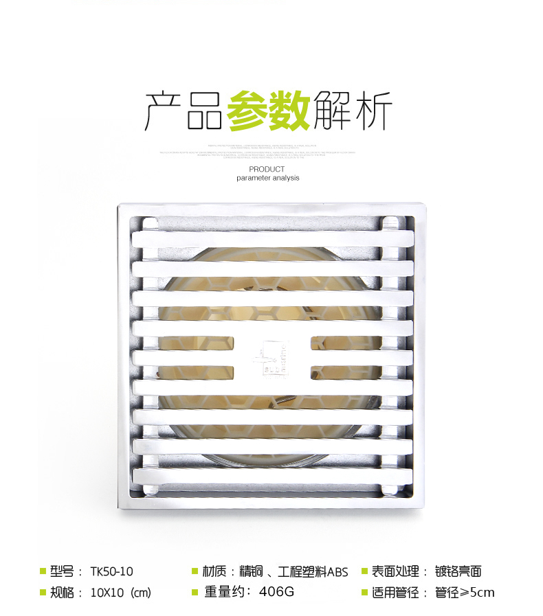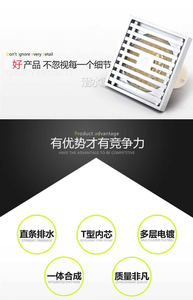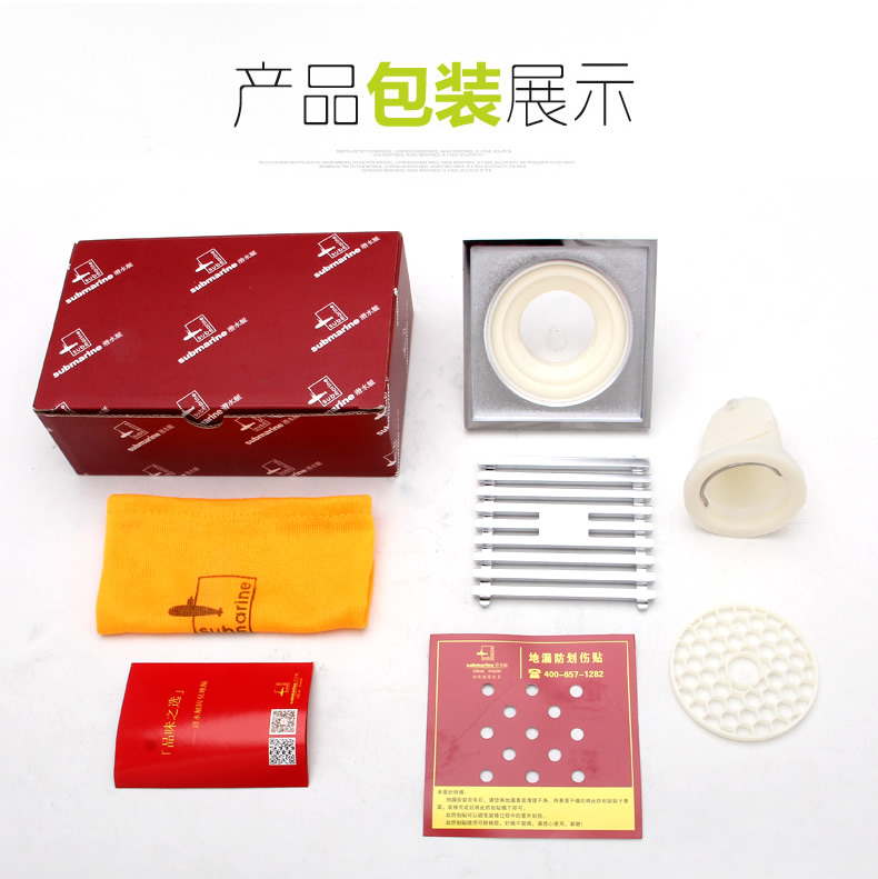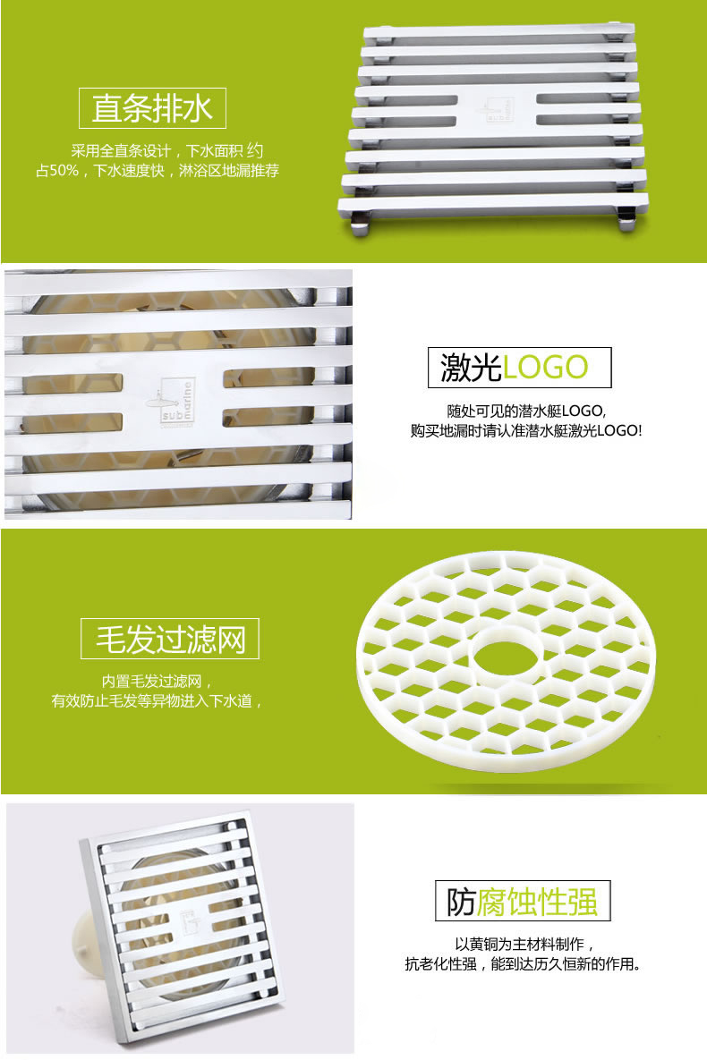 潜水艇(Submarine)TK50-10铜镀铬镜面防臭地漏淋浴大排量四防地漏50管径 自营