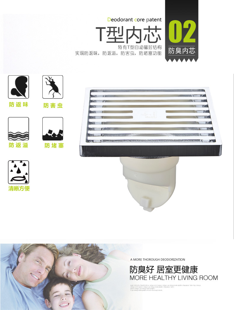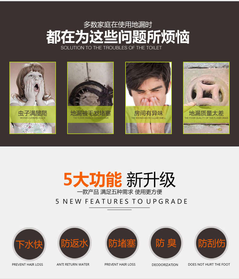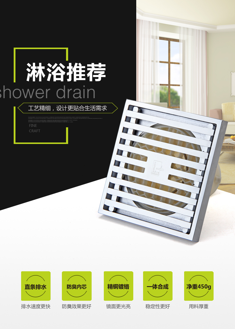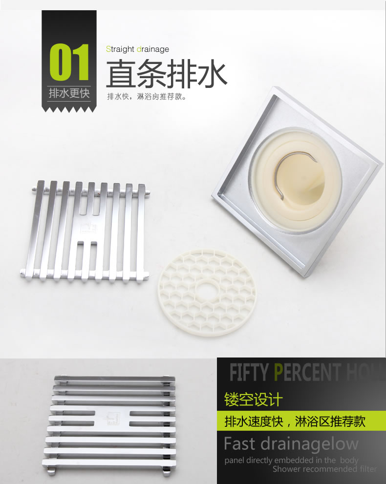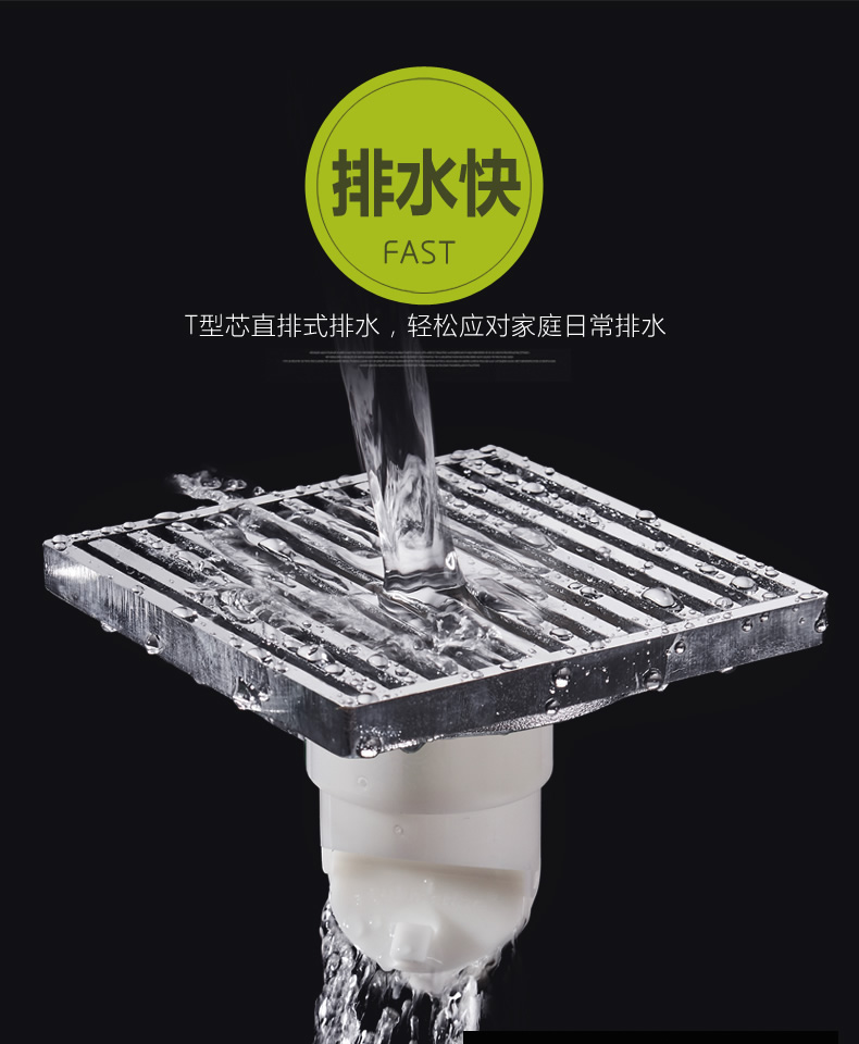 潜水艇(Submarine)TK50-10铜镀铬镜面防臭地漏淋浴大排量四防地漏50管径 自营
