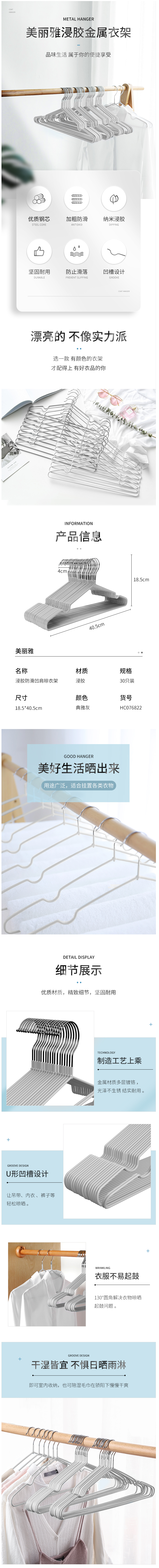 美丽雅(MARYYA)防滑衣架子干湿两用不锈钢金属防滑灰色30只装 自营