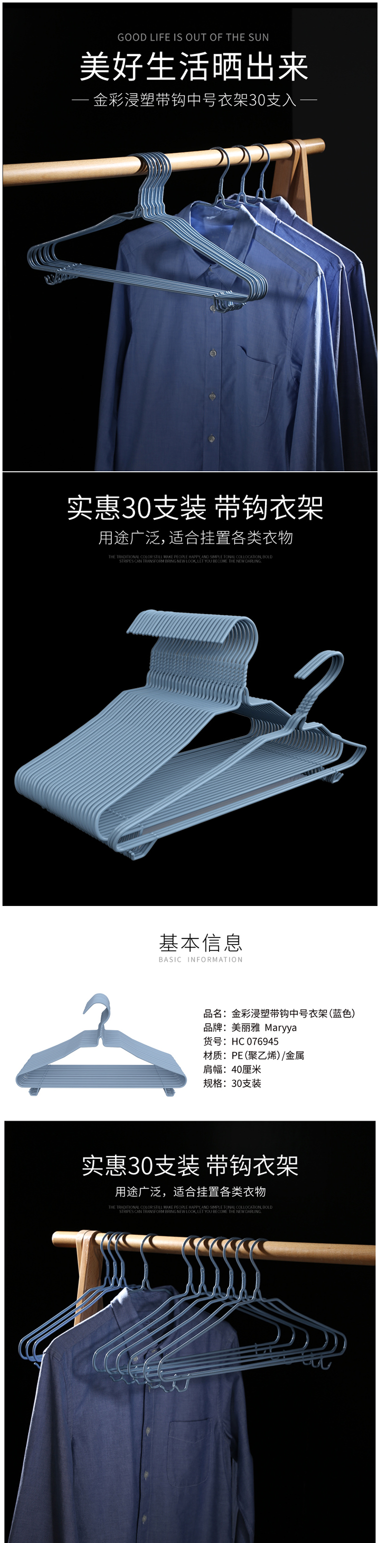 美丽雅晒衣架衣撑子挂衣架浸塑防滑衣架30支/包单支 自营