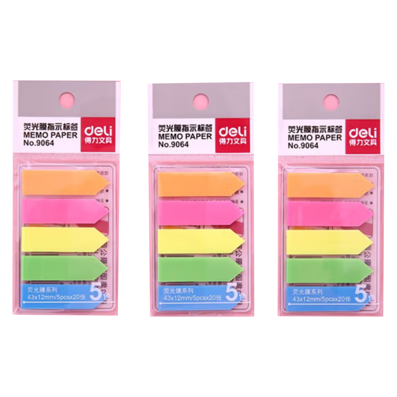 得力(deli)9064记事贴 彩色荧光膜索引指示标签文件分类粘贴便利贴纸创意便签纸 43*12mm(包) 自营