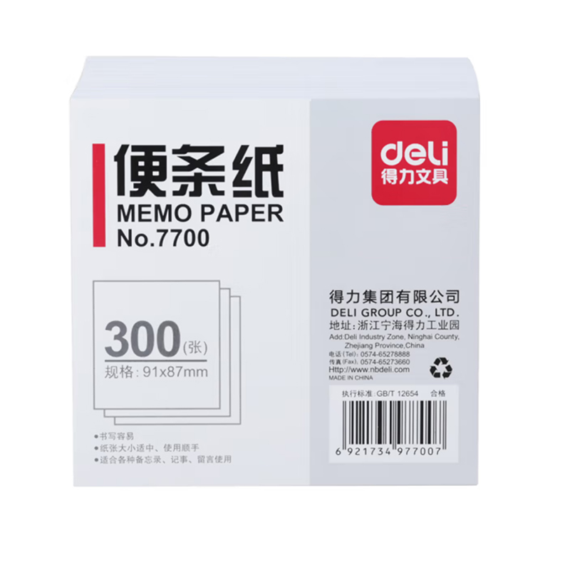 得力(deli)7700记事贴便条纸便签本留言本空白纸空白记事本便签条学生用品办公用品 (91*87mm) 自营