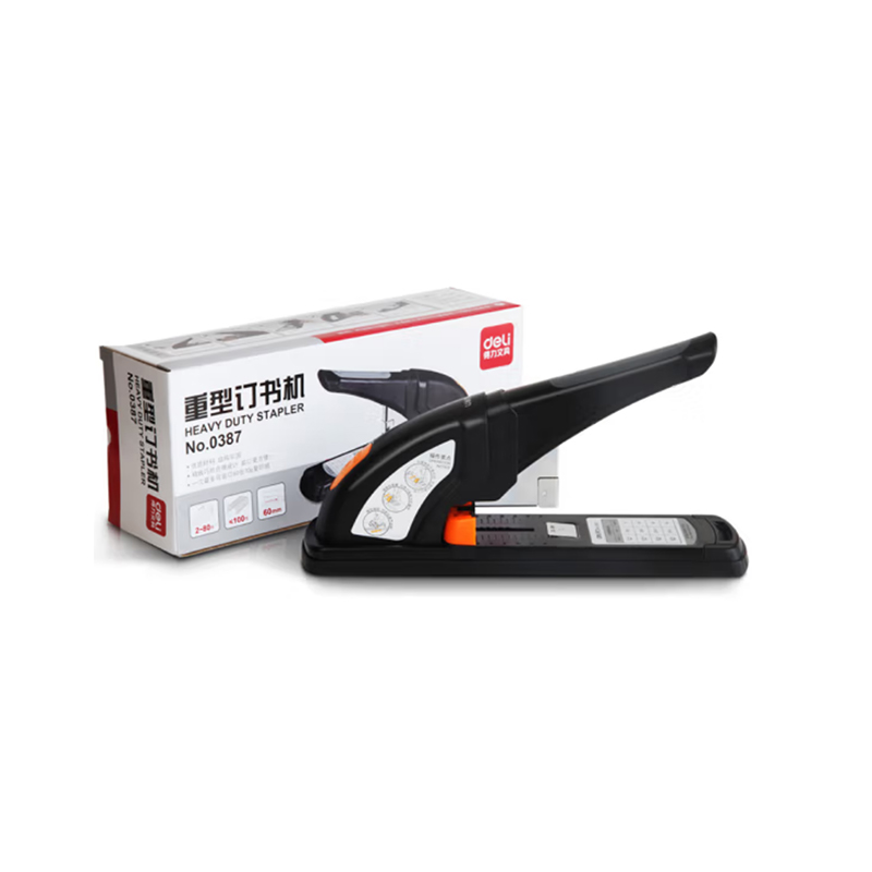 得力(deli)重型订书机大号大型加厚订书器订厚书省力型多功能订书机办公用 订100页 0387黑色 自营