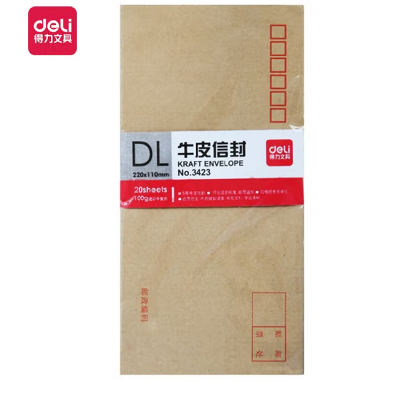 得力(deli)20张5号牛皮纸信封 邮局标准信封220*110mm3423 自营