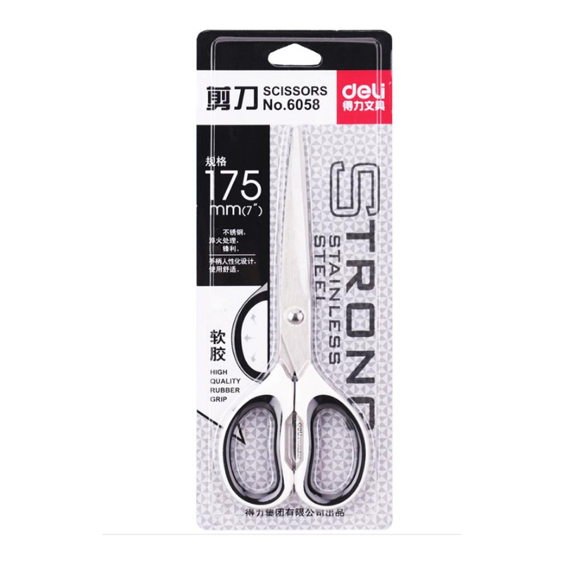 得力(deli)6058 剪刀 长刃剪刀办公剪纸手工不锈钢剪子 175mm 1把 自营