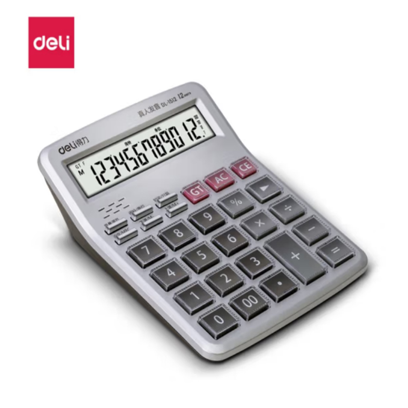 得力(deli)1512 电子计算器 大屏幕多功能计算机大按键12位真人语音计算器1个 自营