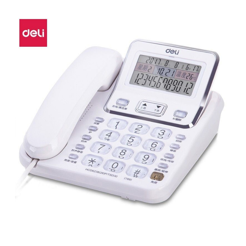 得力(deli)789 普通电话机 固定电话 办公翻转翘头 可接分机 白色 1部 自营