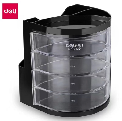 得力/deli9133多功能多格分层黑色笔筒 自营