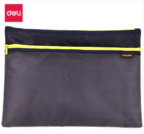 得力/deli 5843 文件袋透气双层布质收纳袋 A5拉链文件袋 单只 深蓝 自营