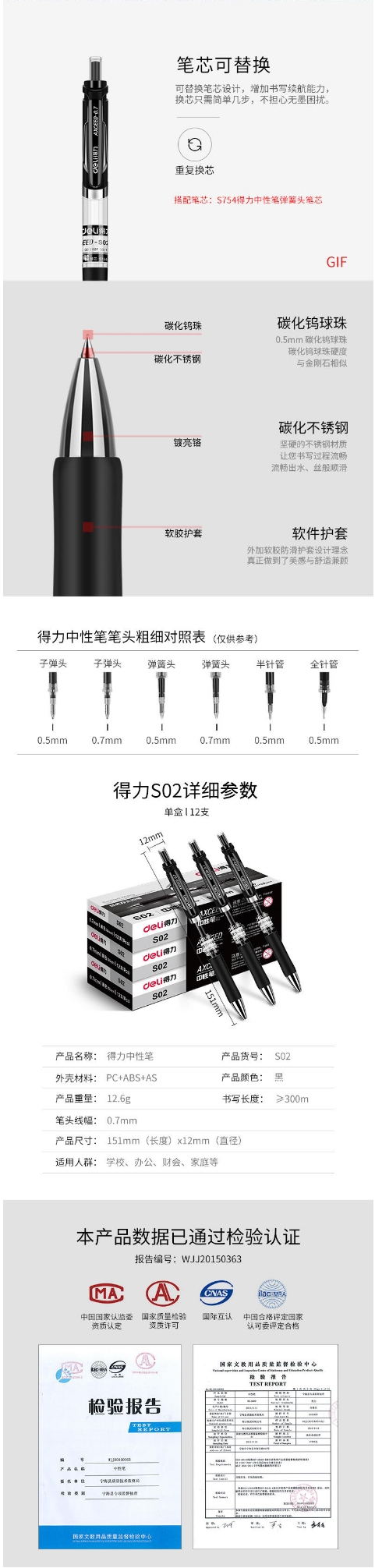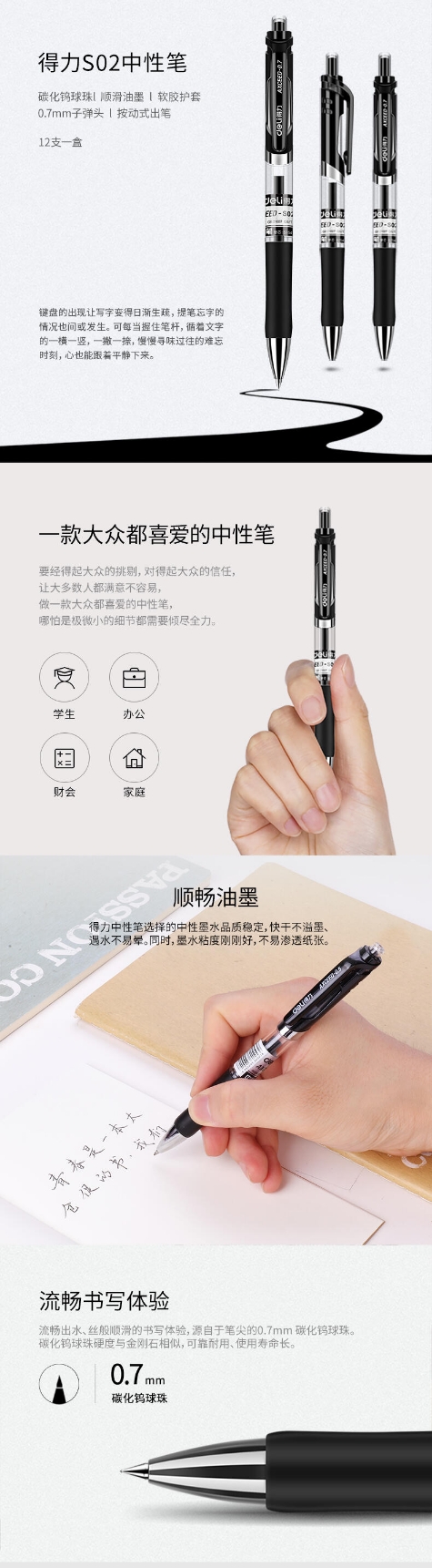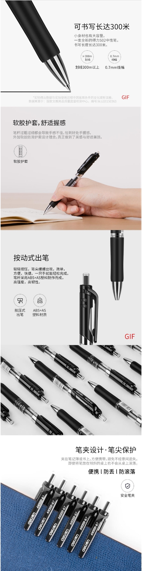 得力/DELI书写用笔类用具S02中性笔 0.7mm中性笔 12支/盒 (单位:支) 黑 自营