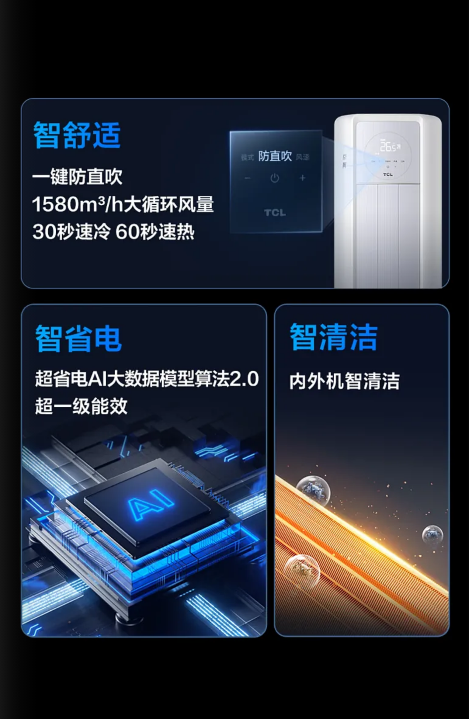 TCL KFR-72LW/ZG1Ta+B1小蓝翼省电空调3匹立式柜机 自营