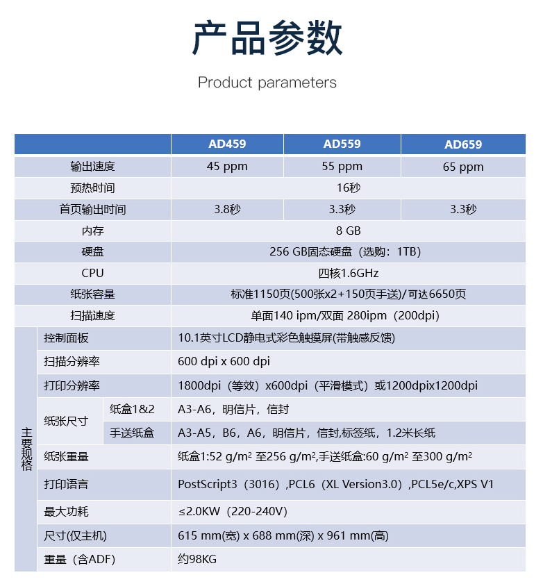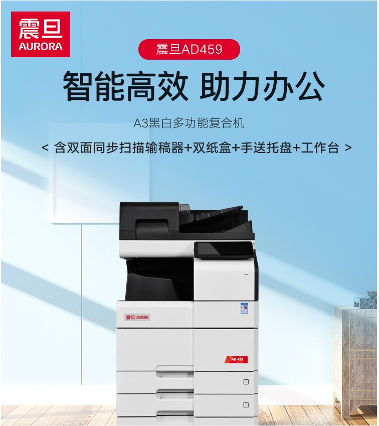 震旦(AURORA)AD459A3黑白多功能数码激光复合机(含双面自动输稿器+双纸盒+手动托盘+工作台) 自营