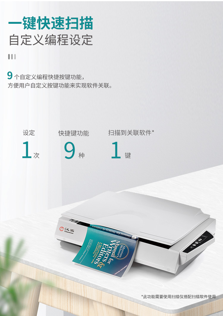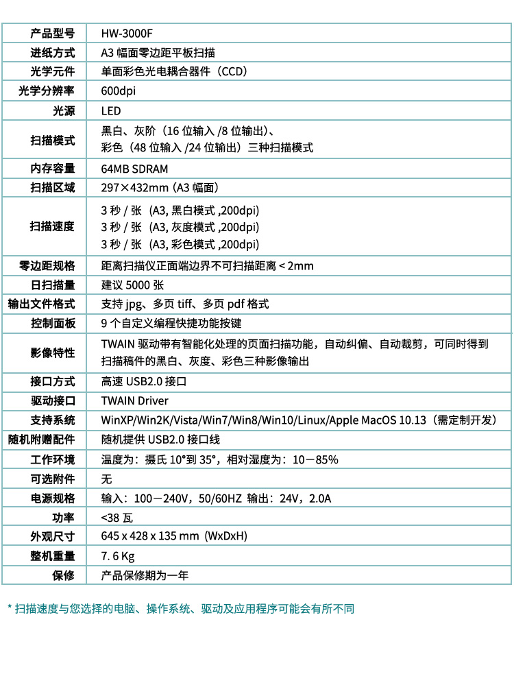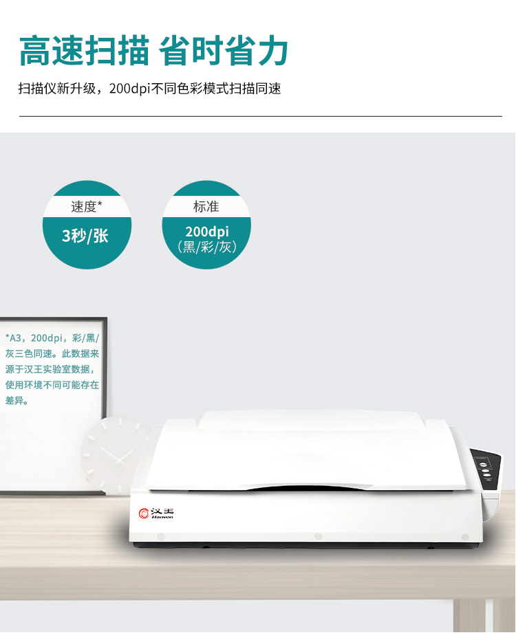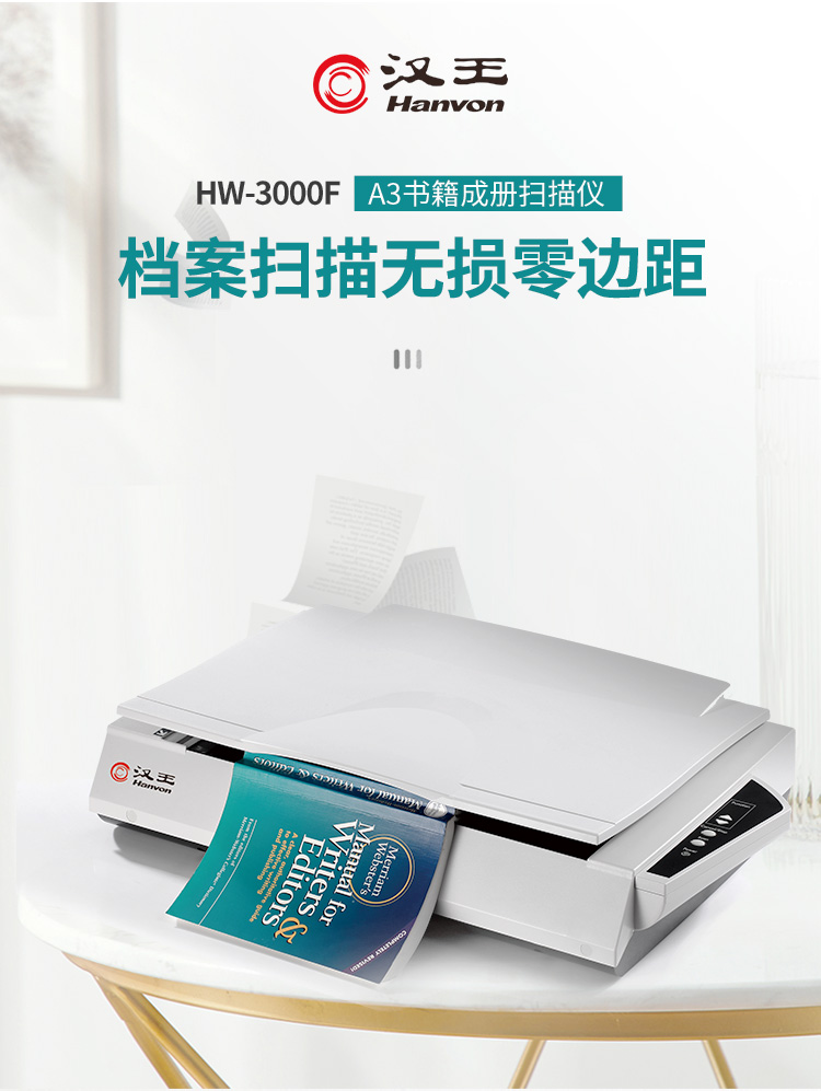 汉王(Hanvon)HW-3000F零边距平板式书籍成册扫描仪A3幅面CCD彩色高清免拆装图书档案数字化加工 自营
