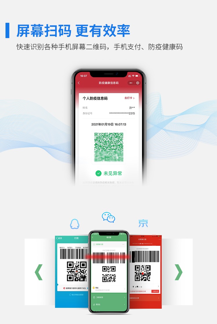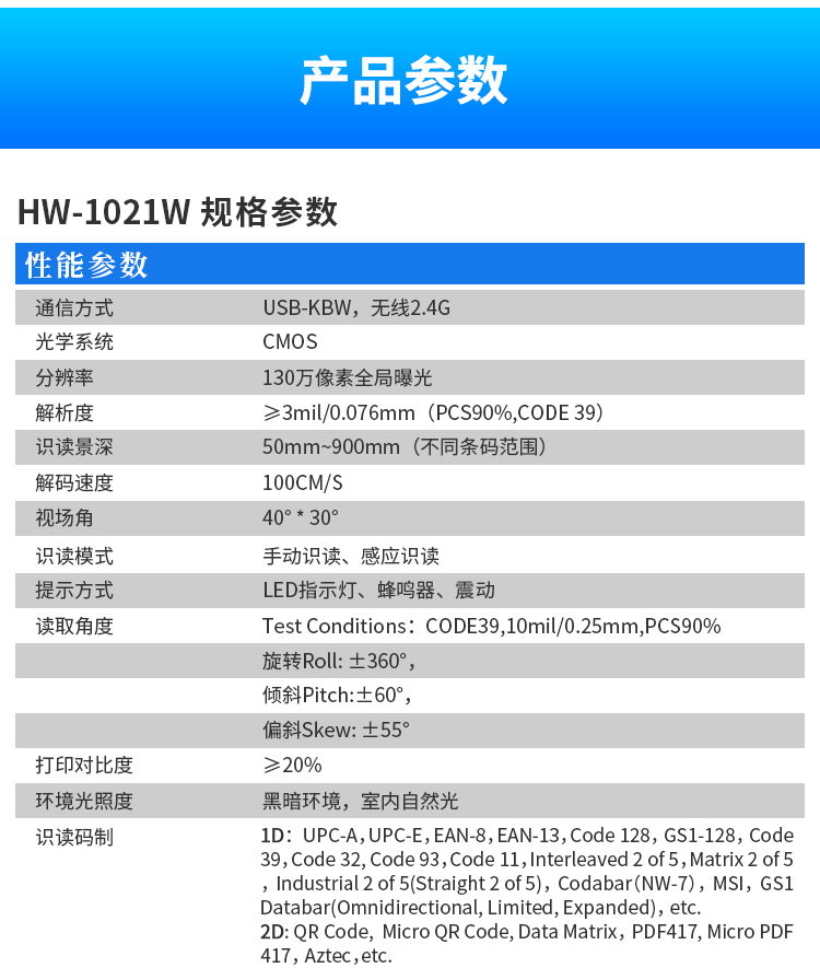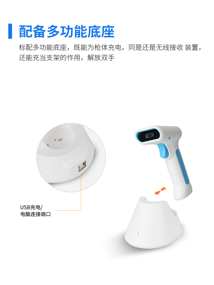 汉王(Hanvon)HW-1021W无线蓝牙一维二维码通用扫描枪影像式医用级扫码枪商超快递医院仓库带充电底座 自营