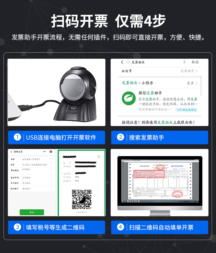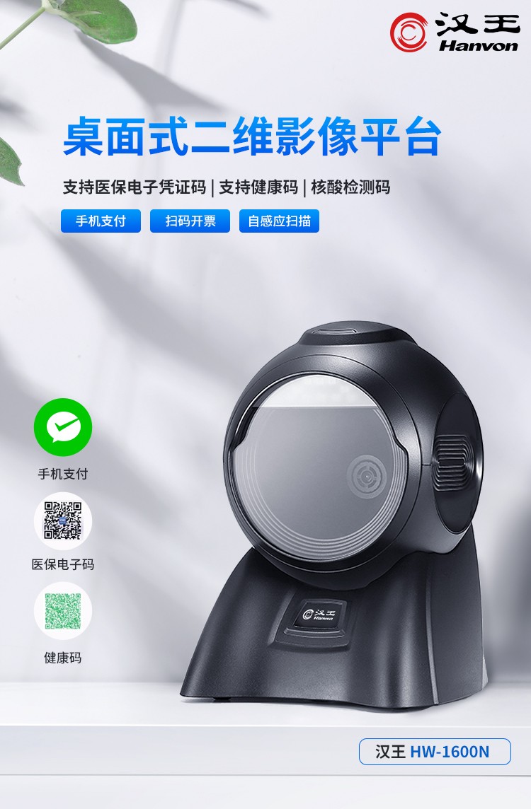 汉王(Hanvon)HW-1600N二维码影像式扫描平台收款盒子扫码盒扫码平台社保卡医保电子凭证扫描器 自营