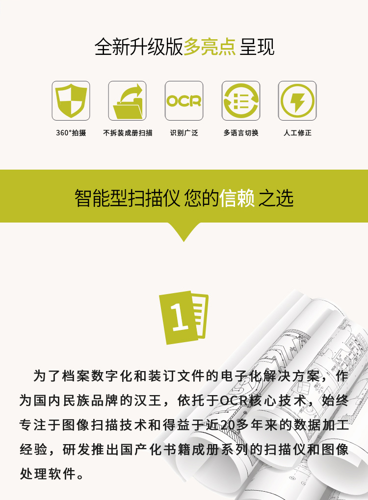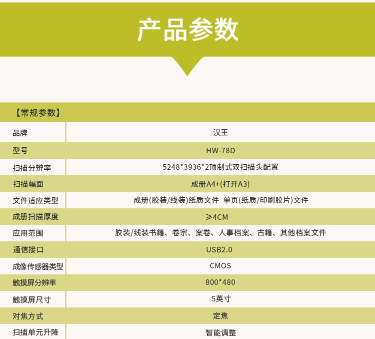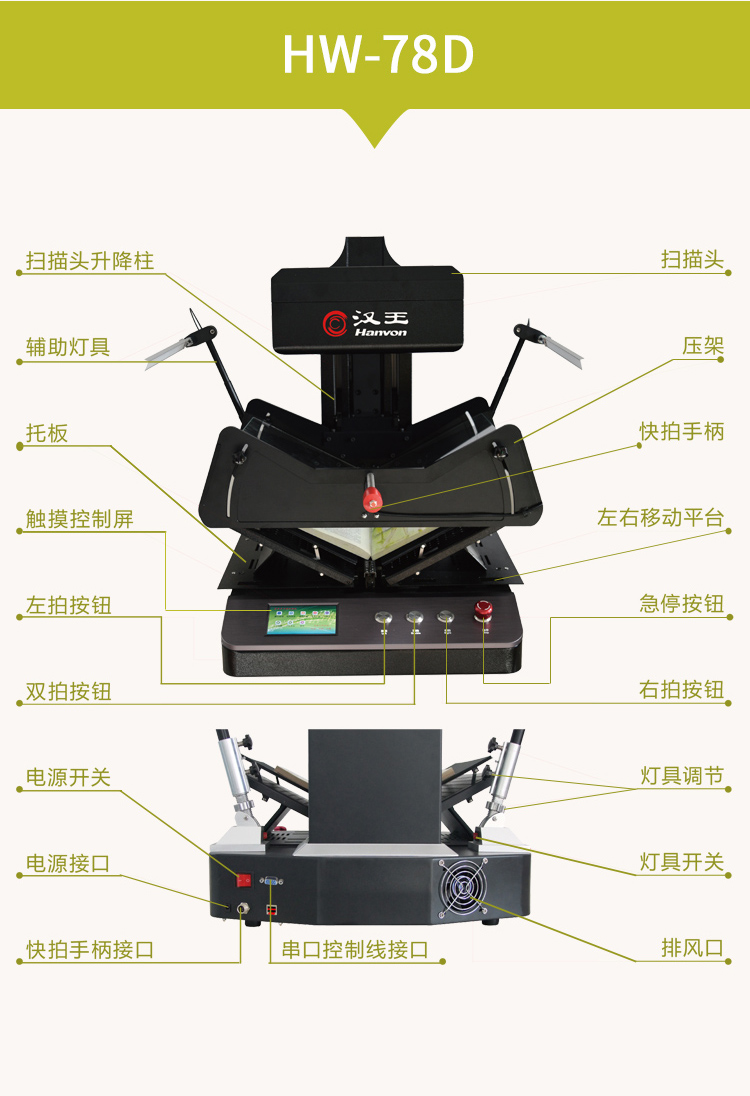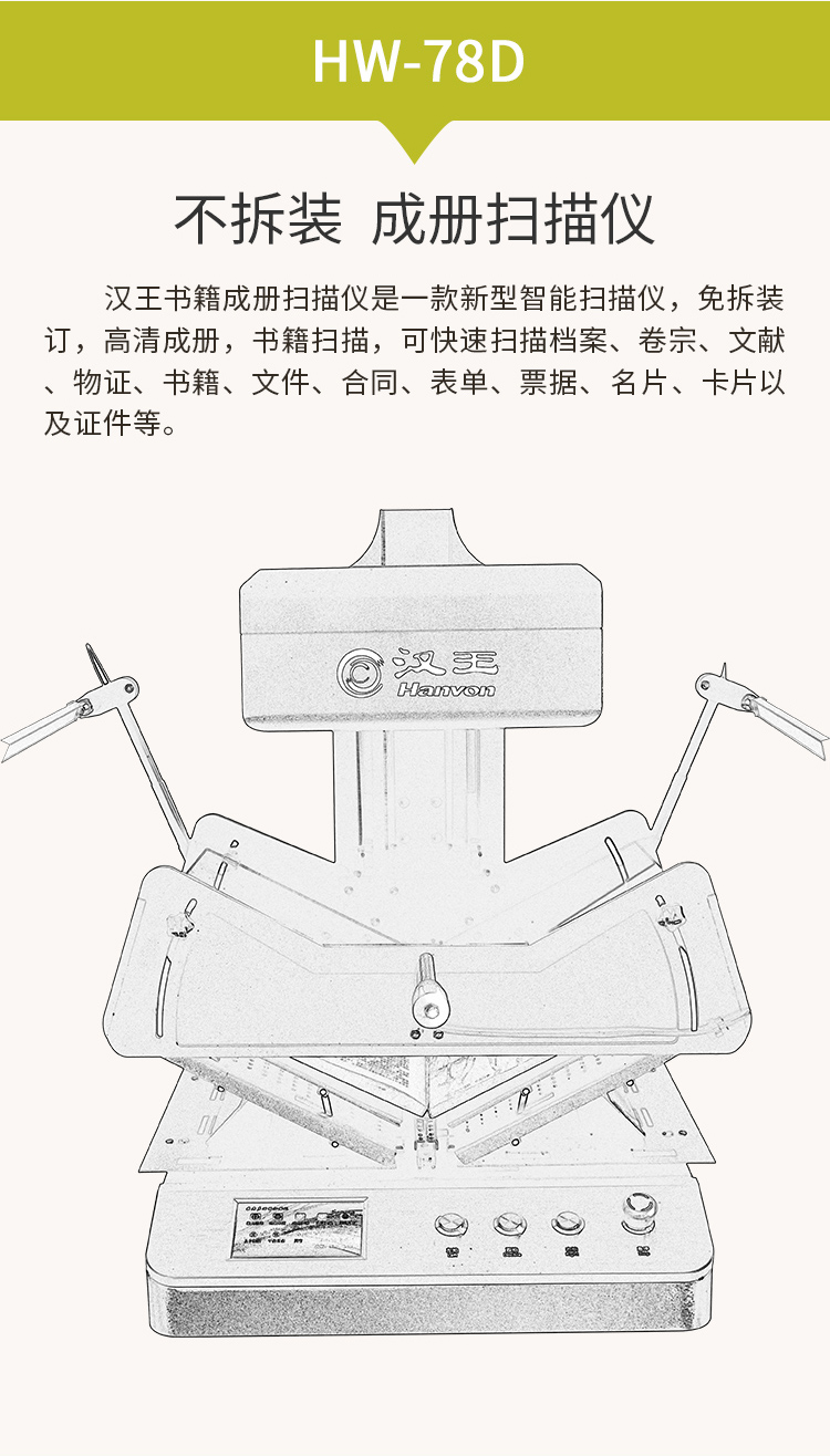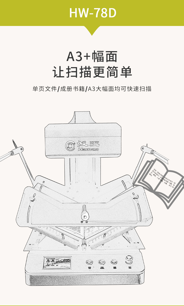 汉王(Hanvon)HW-78D书籍成册扫描仪双2000万高清摄像头A3幅面书刊卷宗古籍档案免拆扫描 自营
