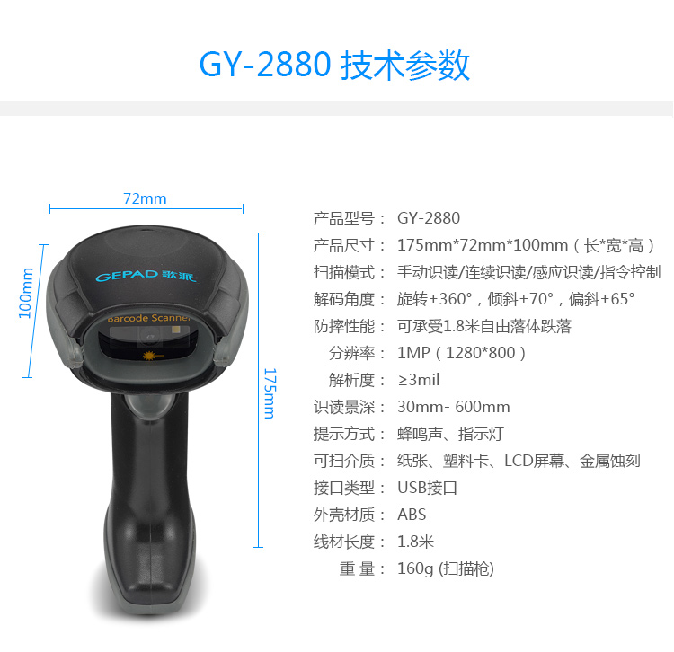 歌派(GEPAD)GY-2880二维工业高精度扫描枪 自营