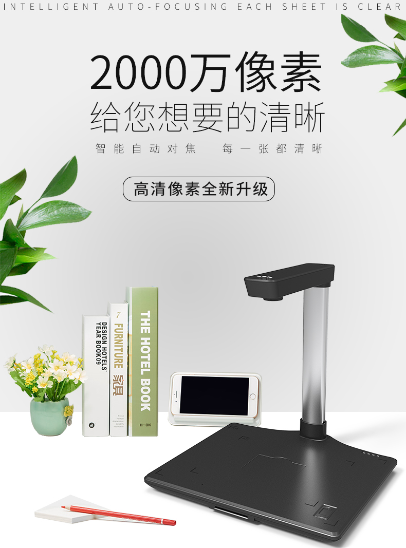 点易拍X2860高拍式扫描仪,A4幅面,2000万像素,商用办公型 自营