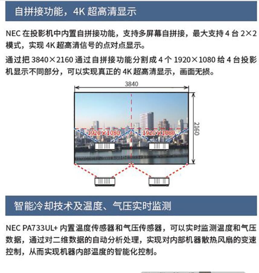 恩益禧(NEC)NP-PA733UL+投影仪(激光7300流明1980*1200)(三片LCD白色) 自营