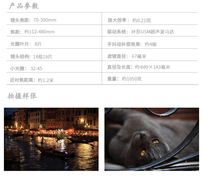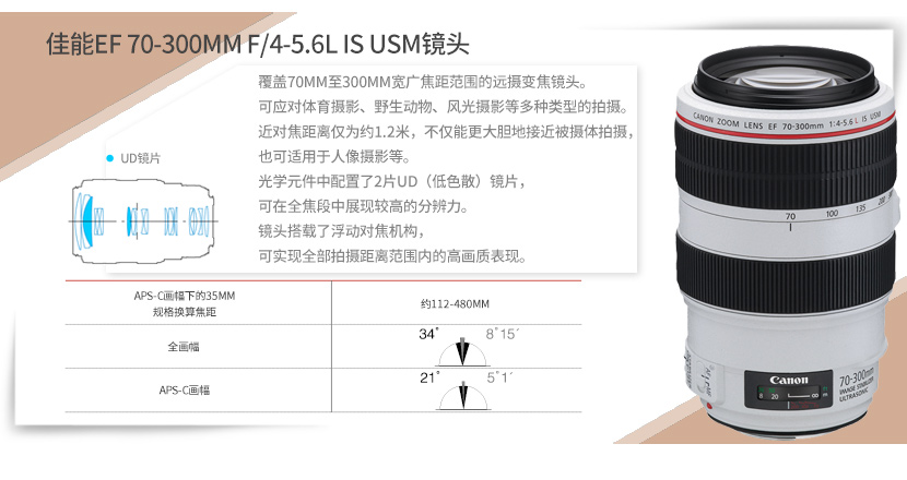 佳能(Canon)EF70-300mmf/4-5.6LISUSM远摄变焦镜头 自营