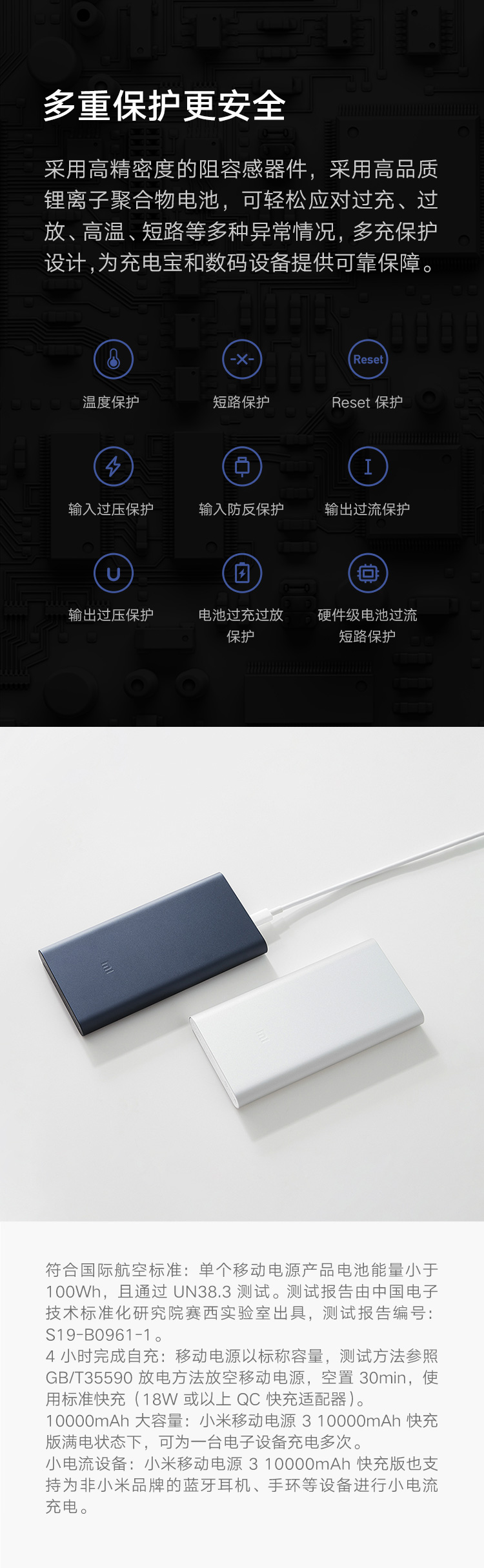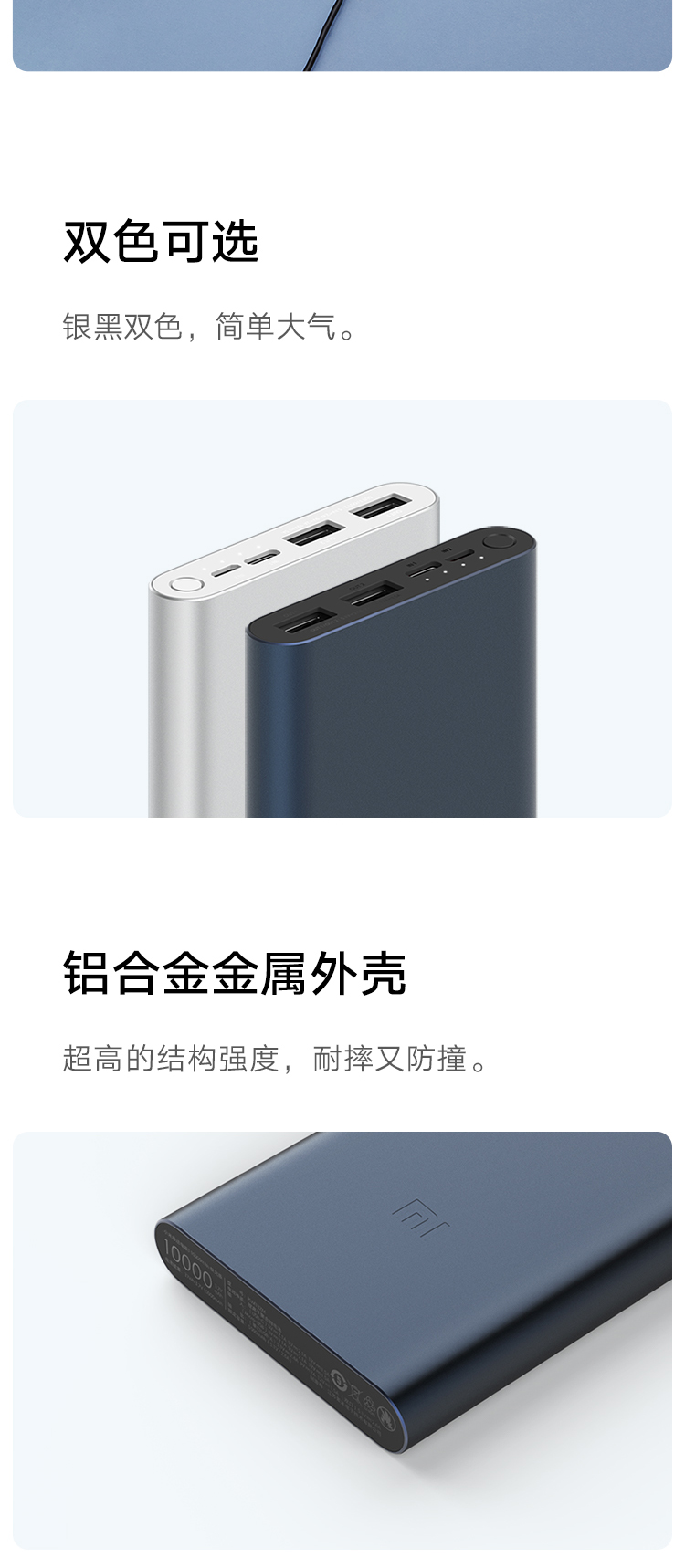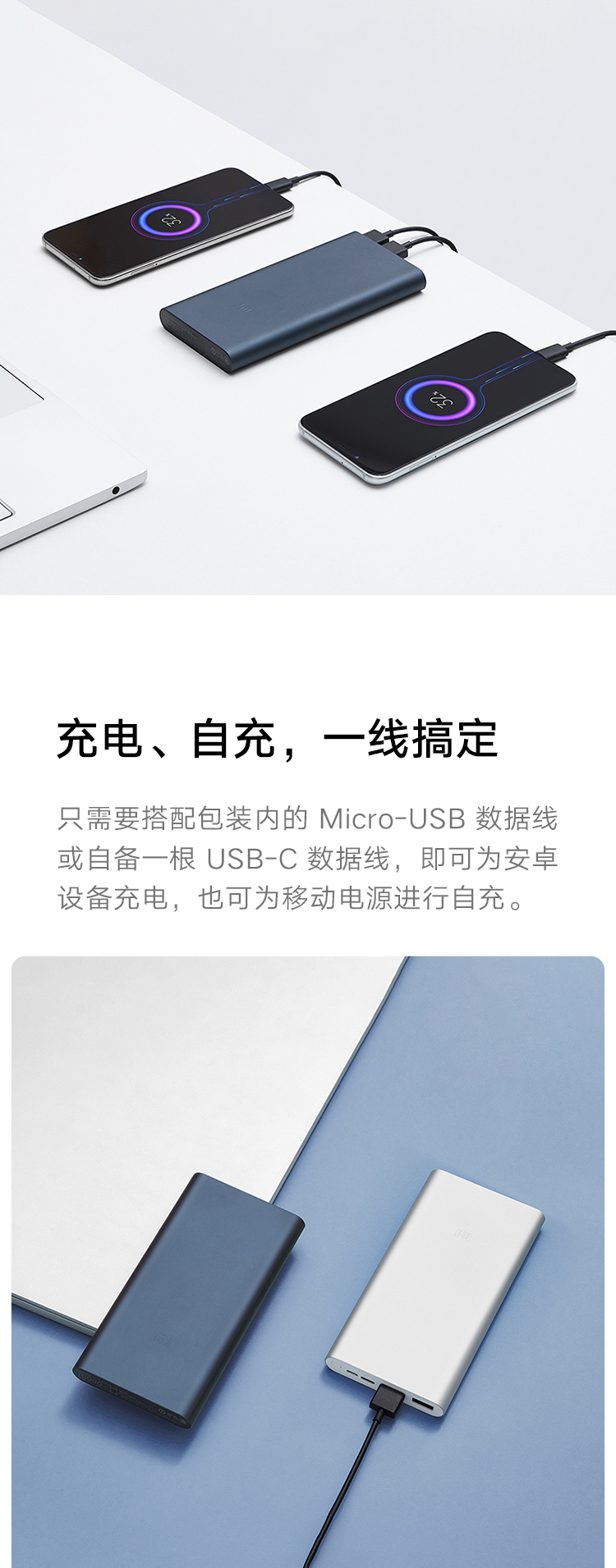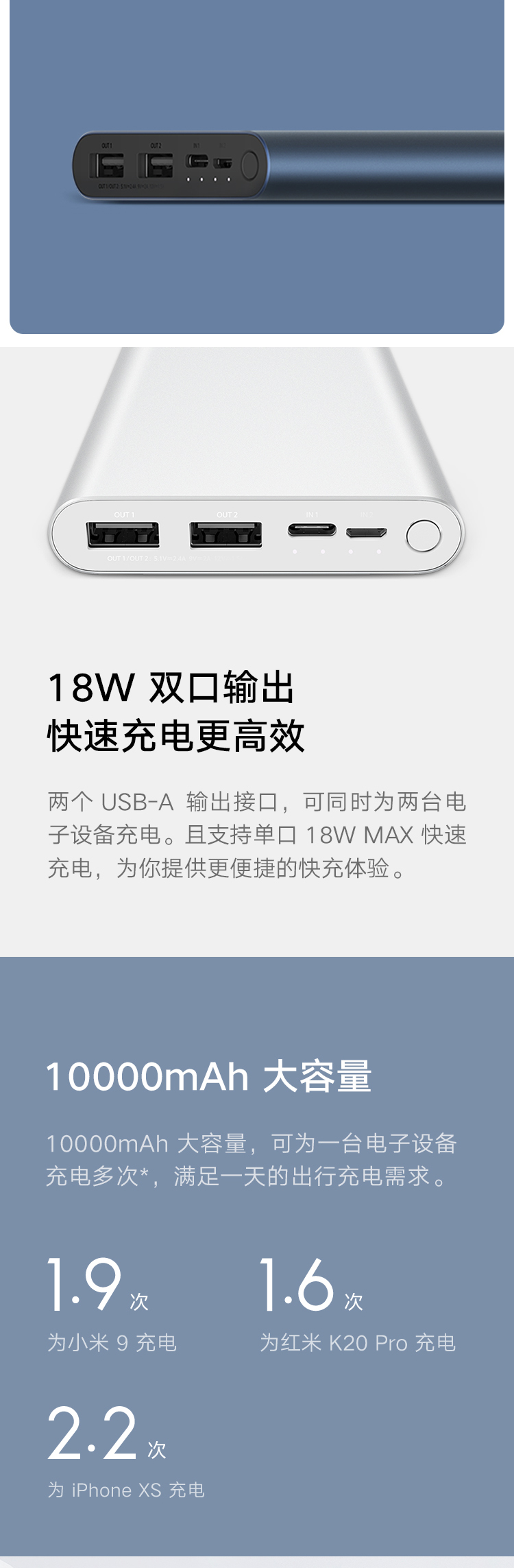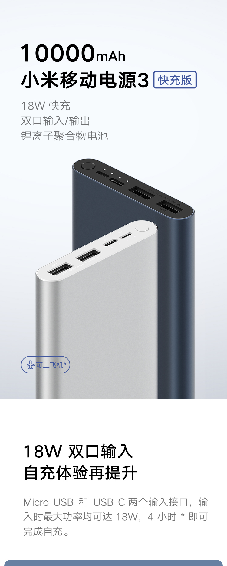 小米移动电源310000mAh快充版银色双向18W快充|双口输入双口输出|高密度锂聚合物电芯 自营