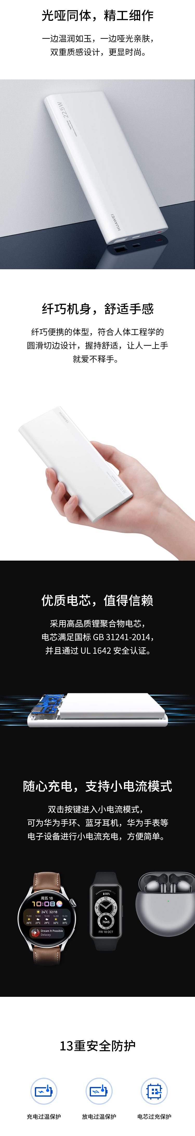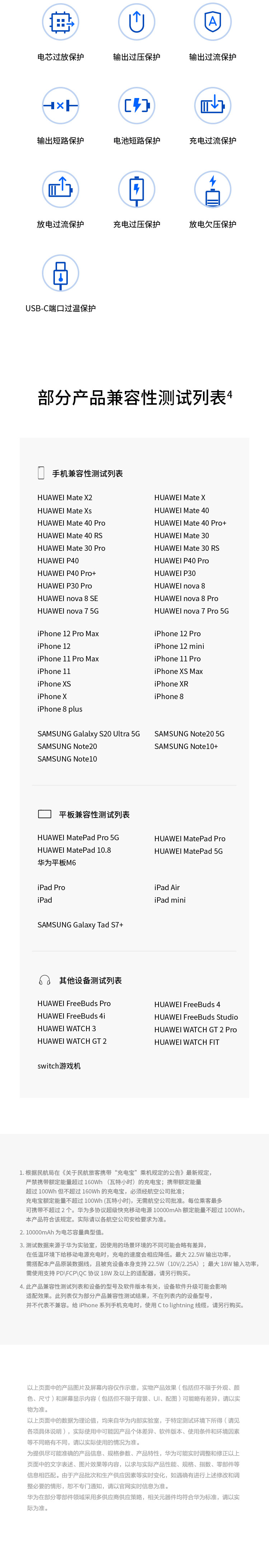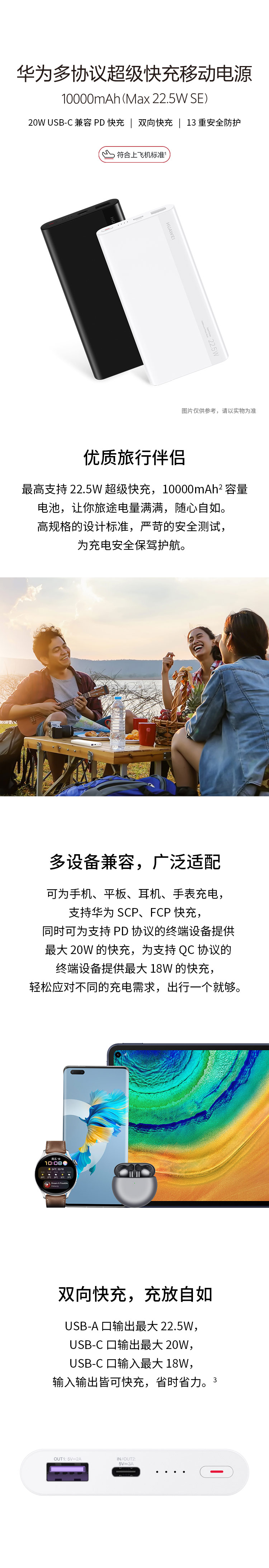 华为多协议超级快充移动电源/充电宝10000mAh(Max22.5WSE)双向快充/20WUSB-C兼容PD快充/可上飞机白色 自营
