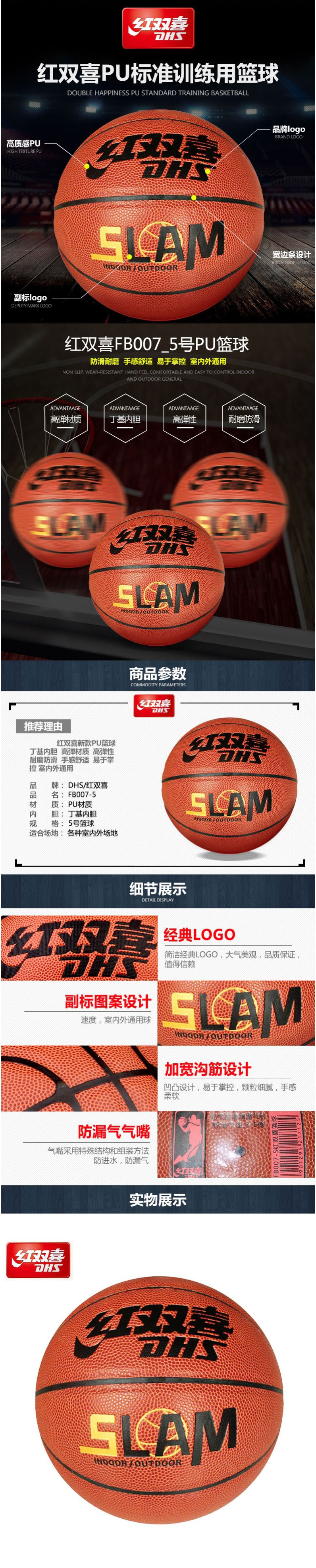 红双喜FB007-5篮球5号高弹PU 自营