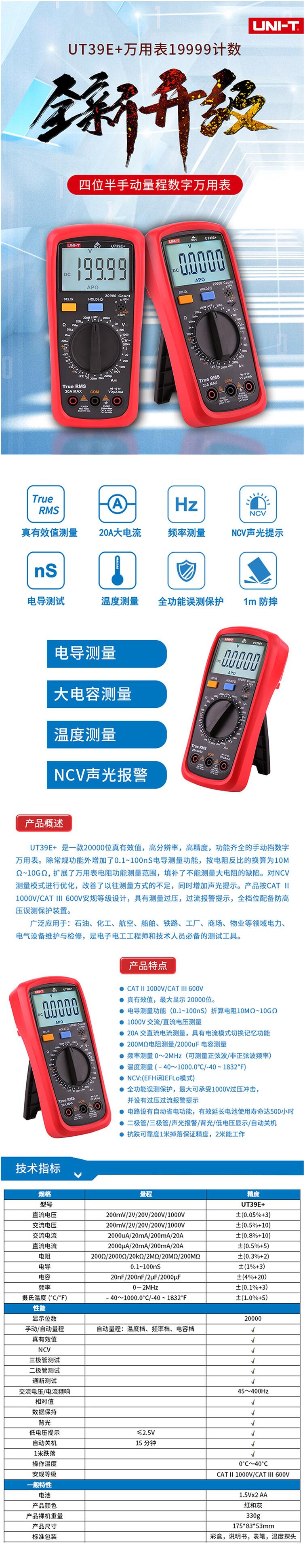优利德(UNI-T)UT39E+高精度数字万用表 自营