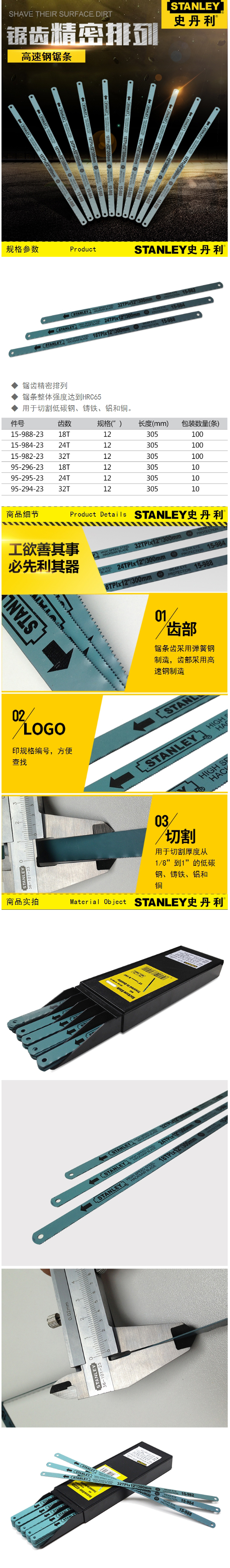 史丹利15-984-23高速钢锯条24齿100个/盒 自营