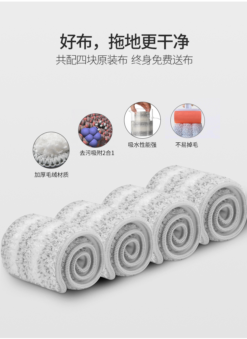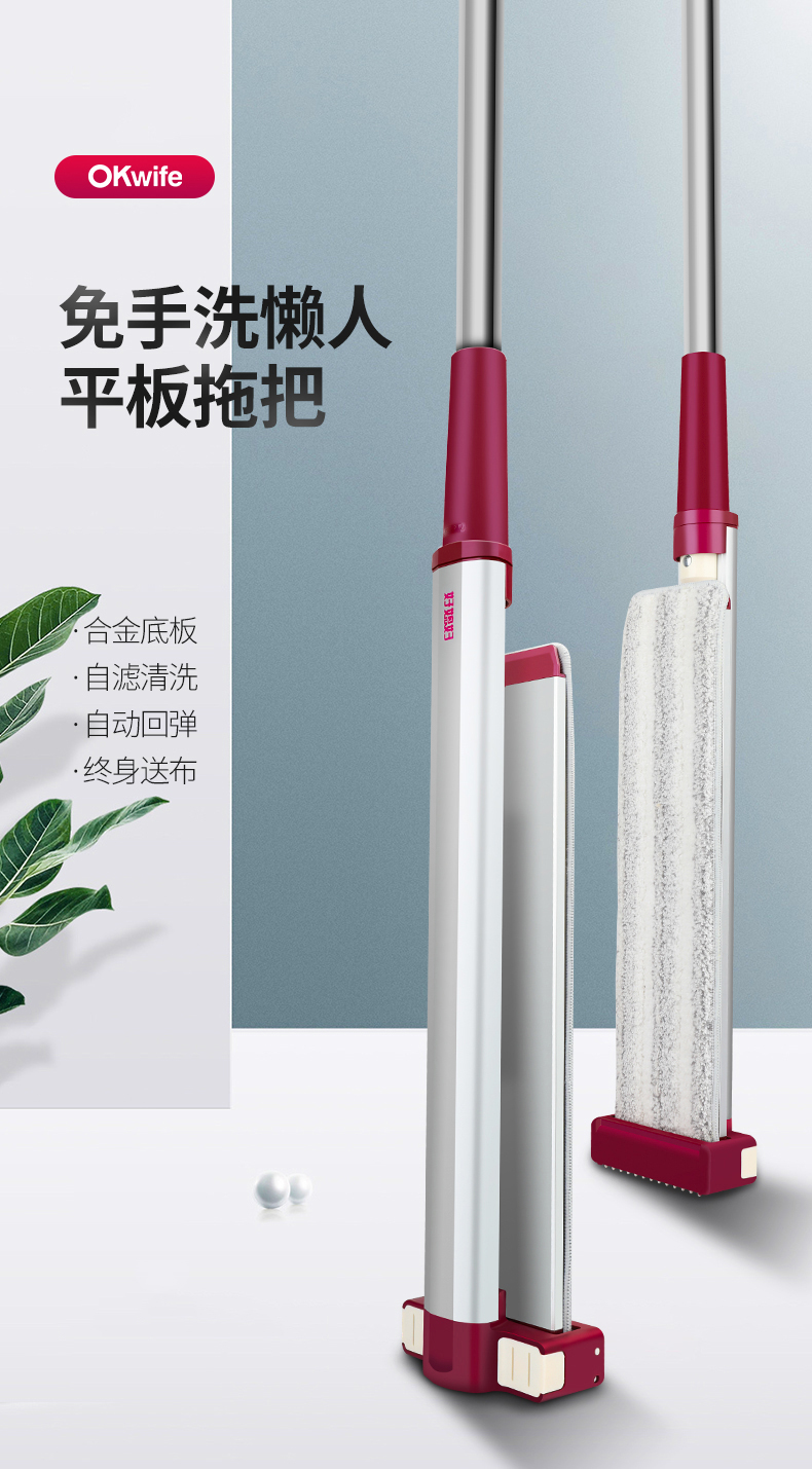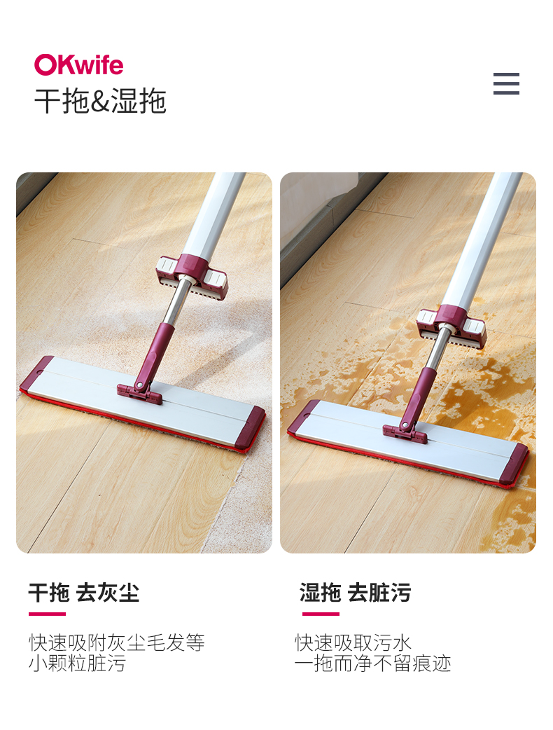 好媳妇免手洗平板旋转拖把不锈钢拖地神器干湿两用地拖40CM 自营