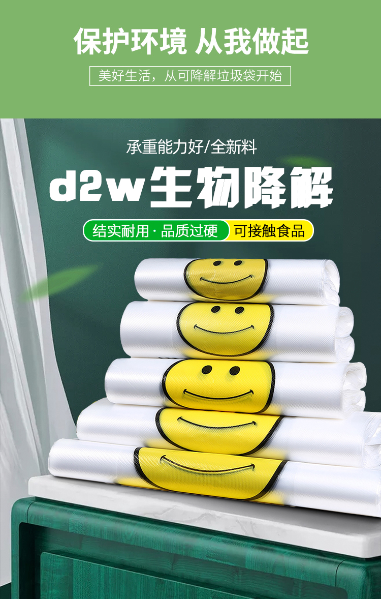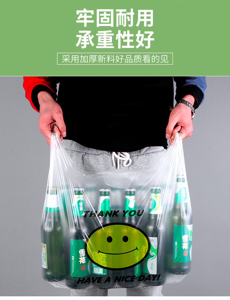 京惠思创【加厚无异味】可降解背心袋30*48cm100只透明笑脸购物袋食品打包袋外卖塑料袋超市手提袋马甲袋 自营