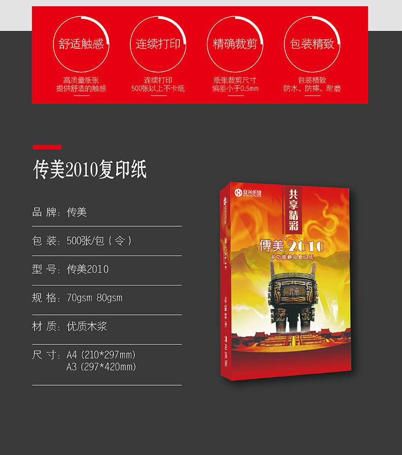 百兴(传美2010)80gA3复印纸500张/包 自营
