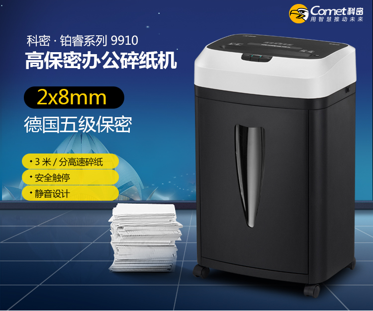 科密(comet)9910铂睿系列碎纸机高保密办公碎纸机小颗粒文件粉碎机 自营