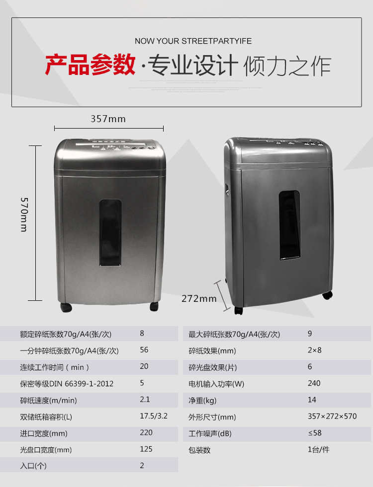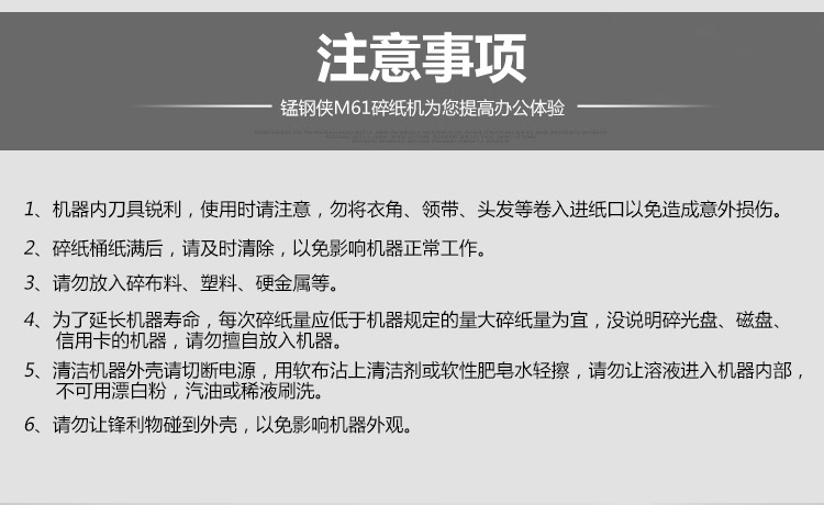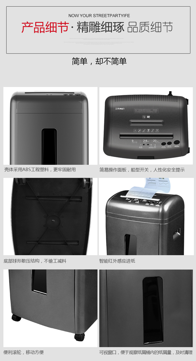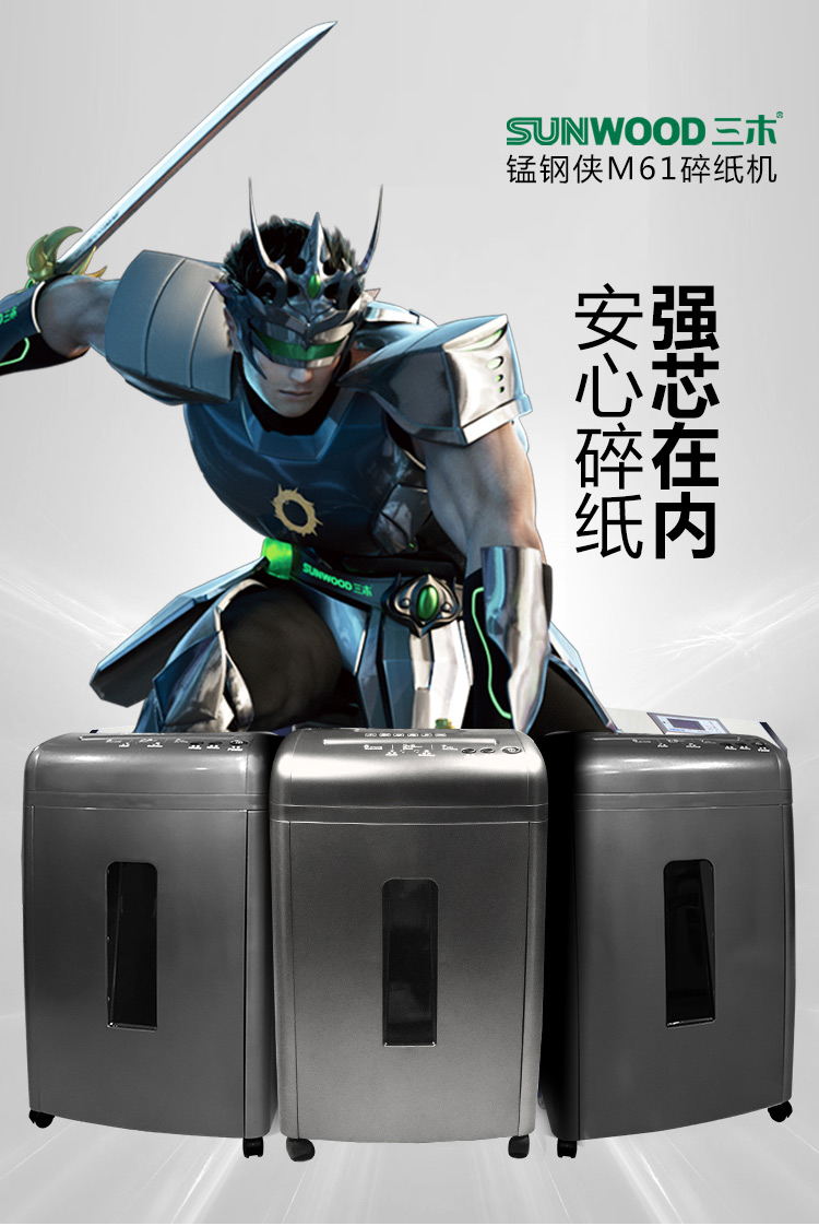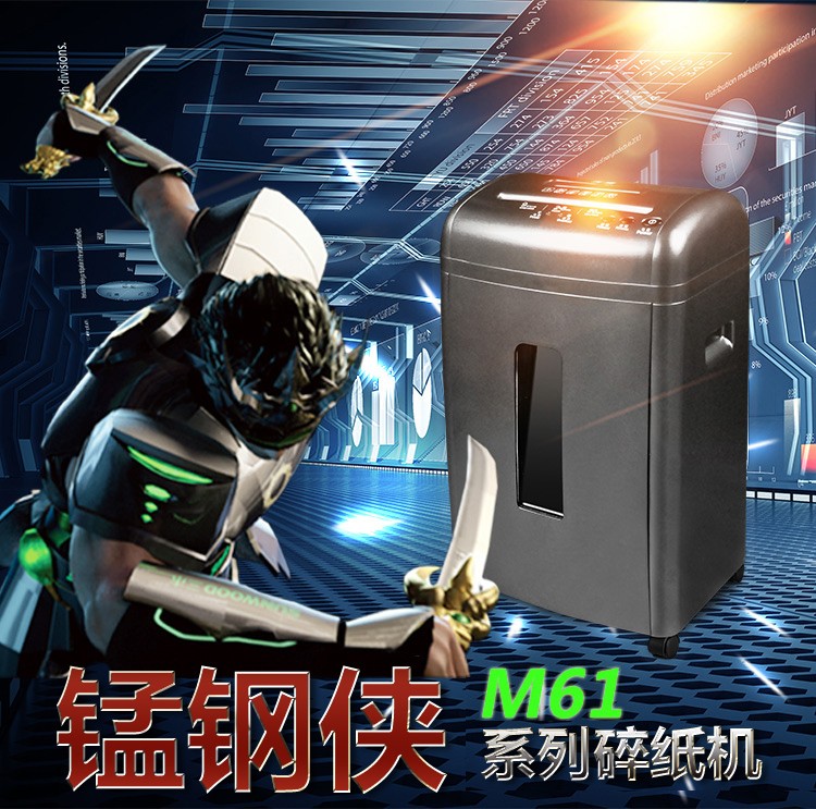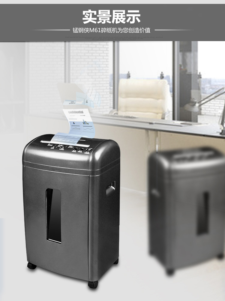 三木M61锰钢侠系列碎纸机五级保密20分钟连续碎纸每分钟可碎56张A4纸双入口 自营