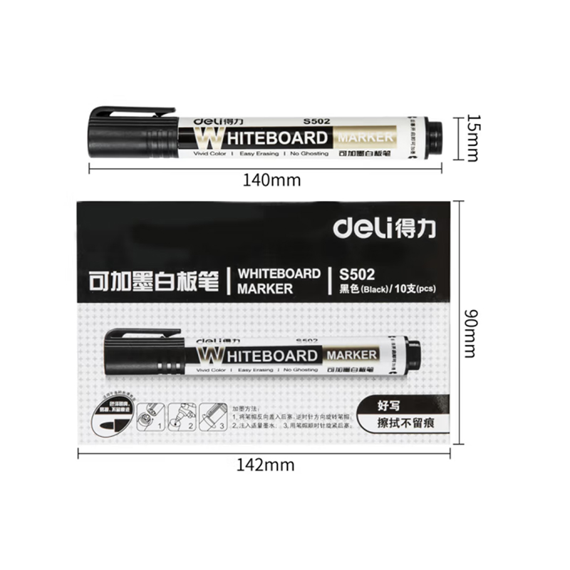 得力(deli)可加墨白板笔 可擦易擦 办公会议教学用 10支/盒DL-S502 办公用品 自营