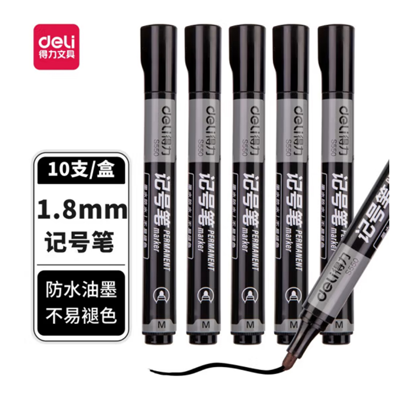 得力(deli)记号笔快干防水油性墨水黑色蓝色红色彩色粗头双线幅不掉色商务办公文具 S550 自营