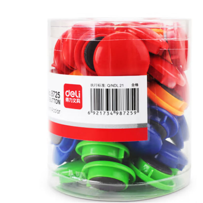 得力 (deli)筒装磁钉彩色白板磁扣磁钉白板磁铁黑板吸铁磁力扣 8725 φ30mm(混)(48粒/筒) 自营