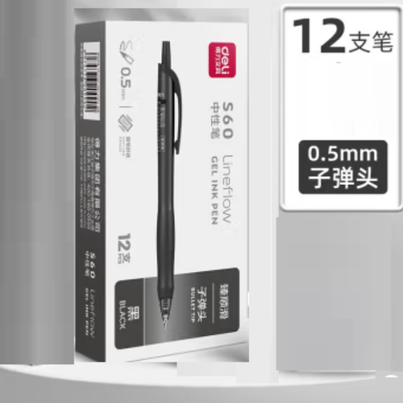 得力(deli) s60 书写用笔类用具 中性笔0.5mm黑 碳素笔1支 自营